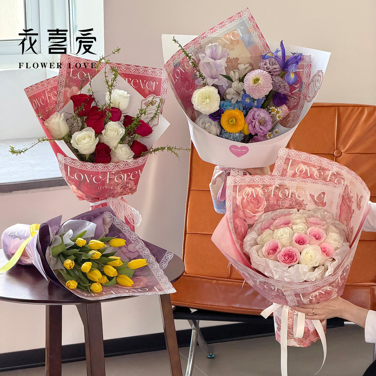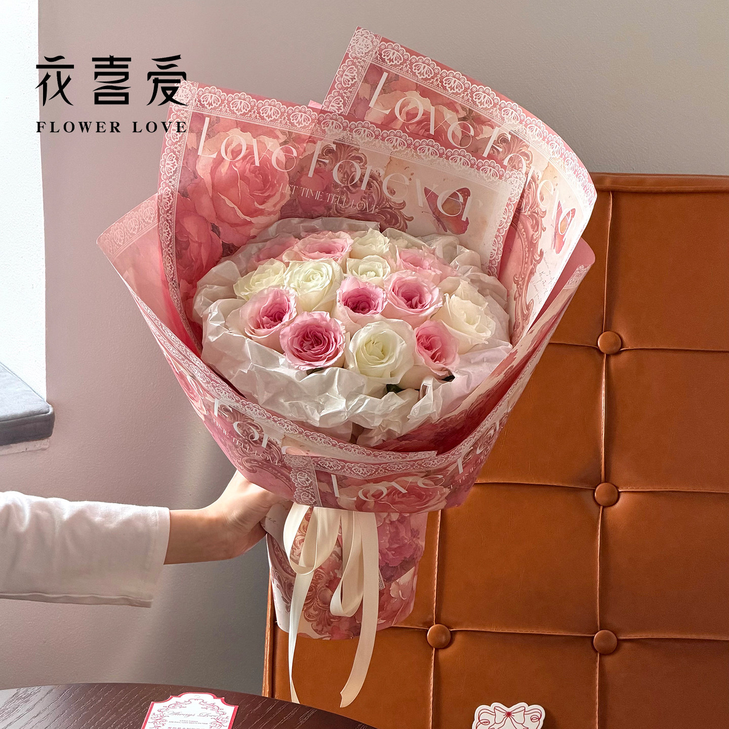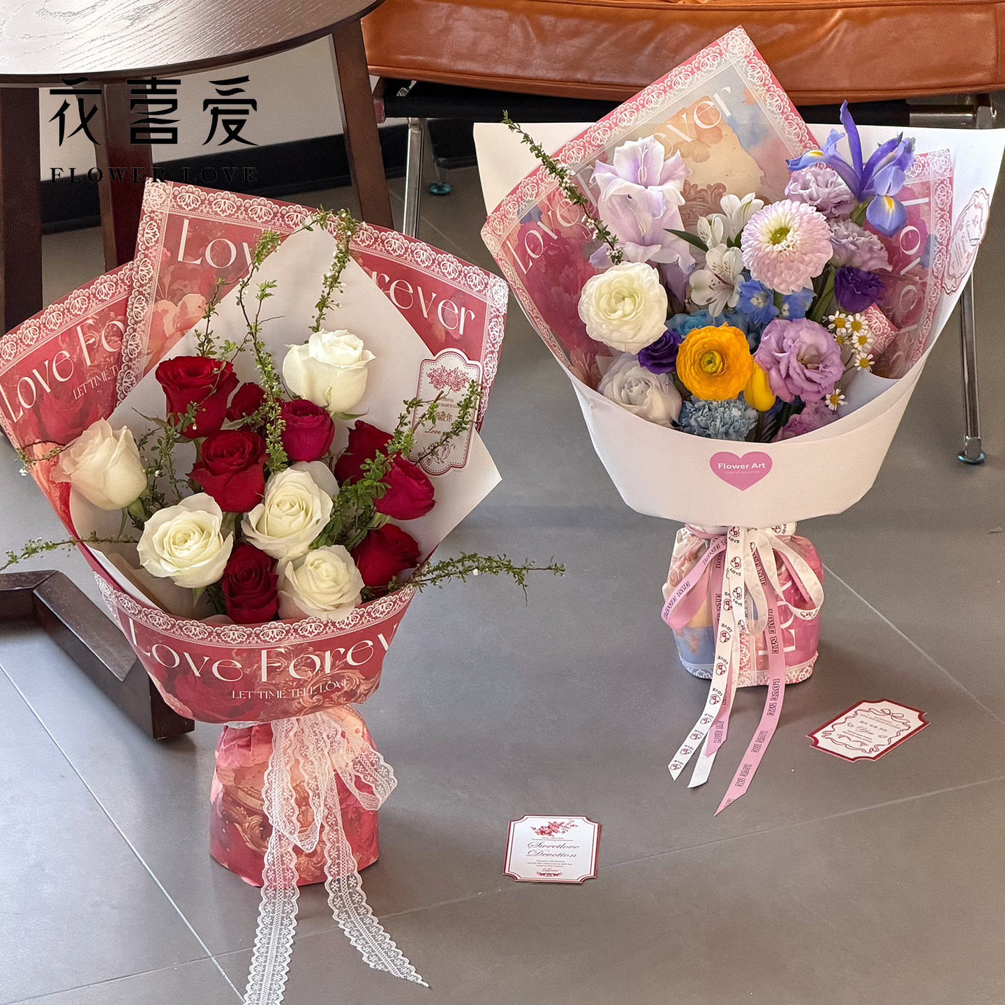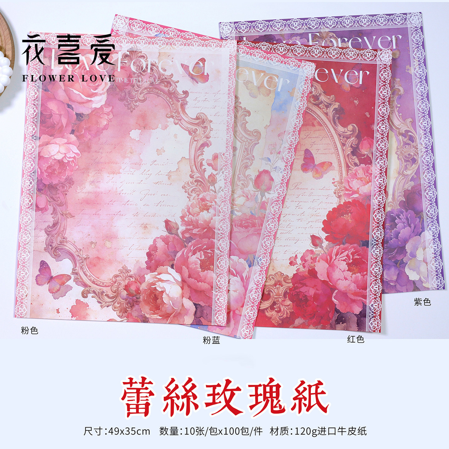 花喜爱情人节复古玫瑰花艺包装纸蕾丝花卉氛围纸花店用加厚牛皮纸
