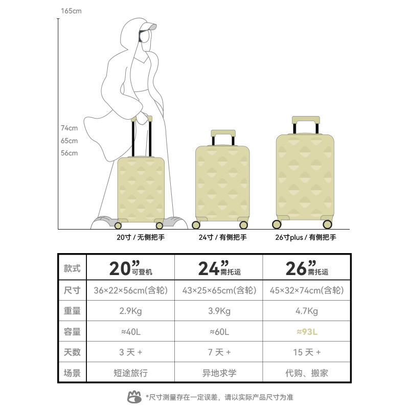 不莱玫行李箱女大容量留学24寸万向轮拉杆箱20寸登机旅行箱结实