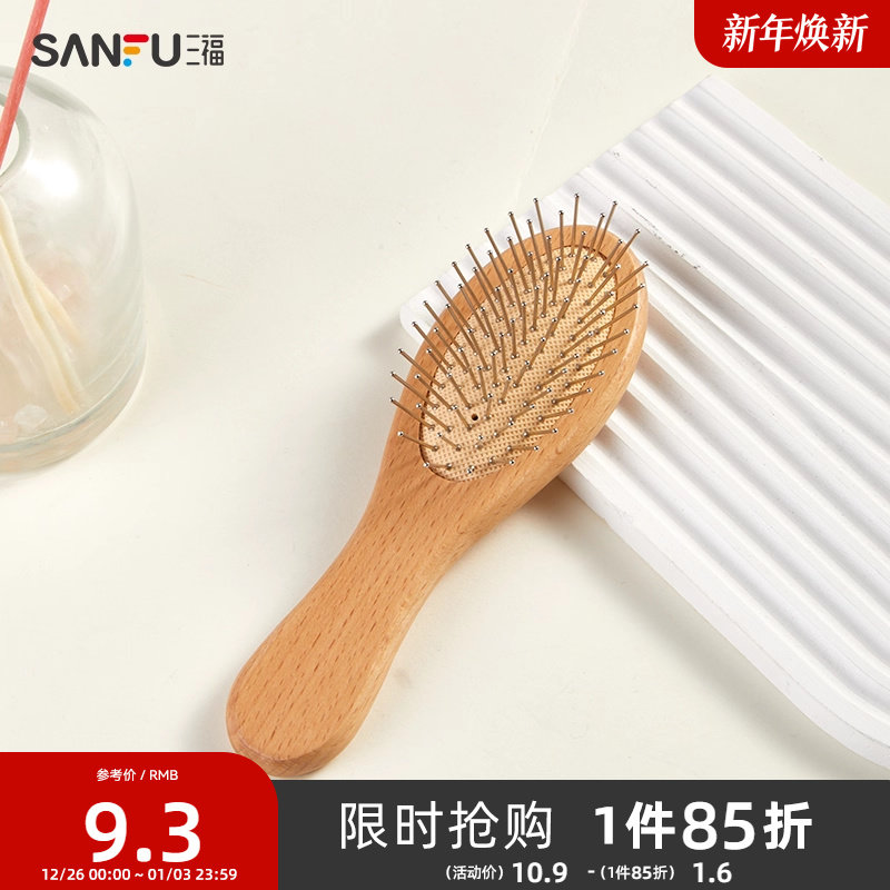 秀色物语榉木钢针按摩梳 便携木质化妆梳气囊梳子477765