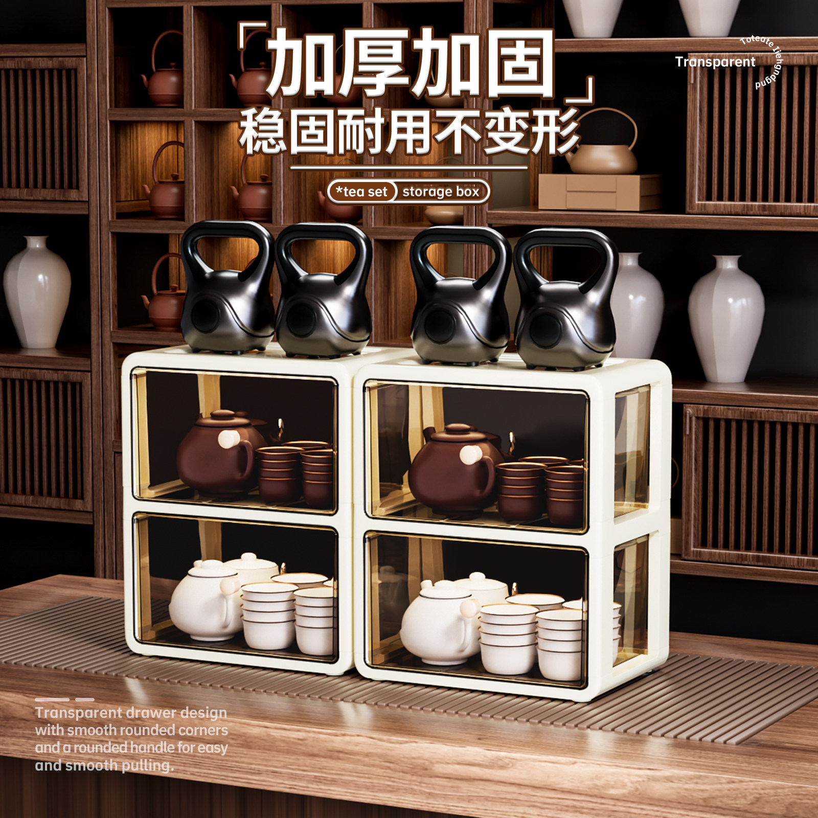 茶具收纳盒抽屉式防尘茶几桌面茶叶茶杯整理盒存放功夫茶壶置物架