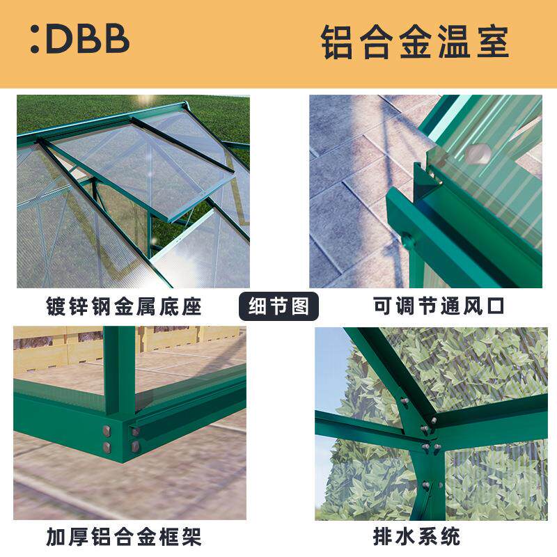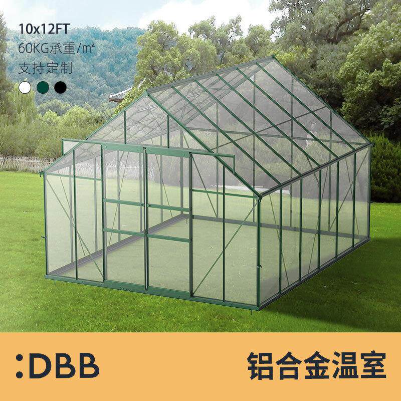 户外植物温室阳光房铝合金钢化顶抗风阳光板温室花房厂家跨境