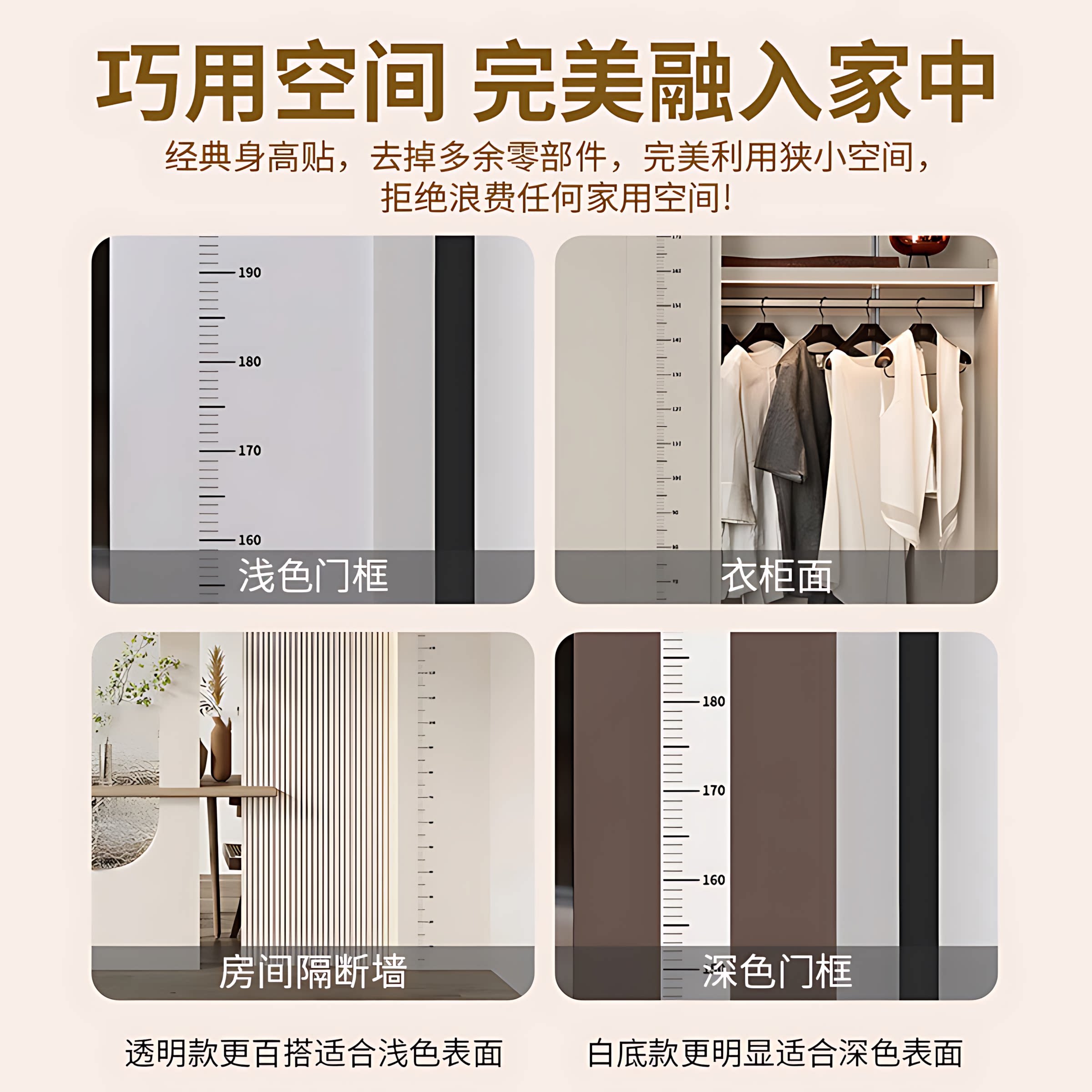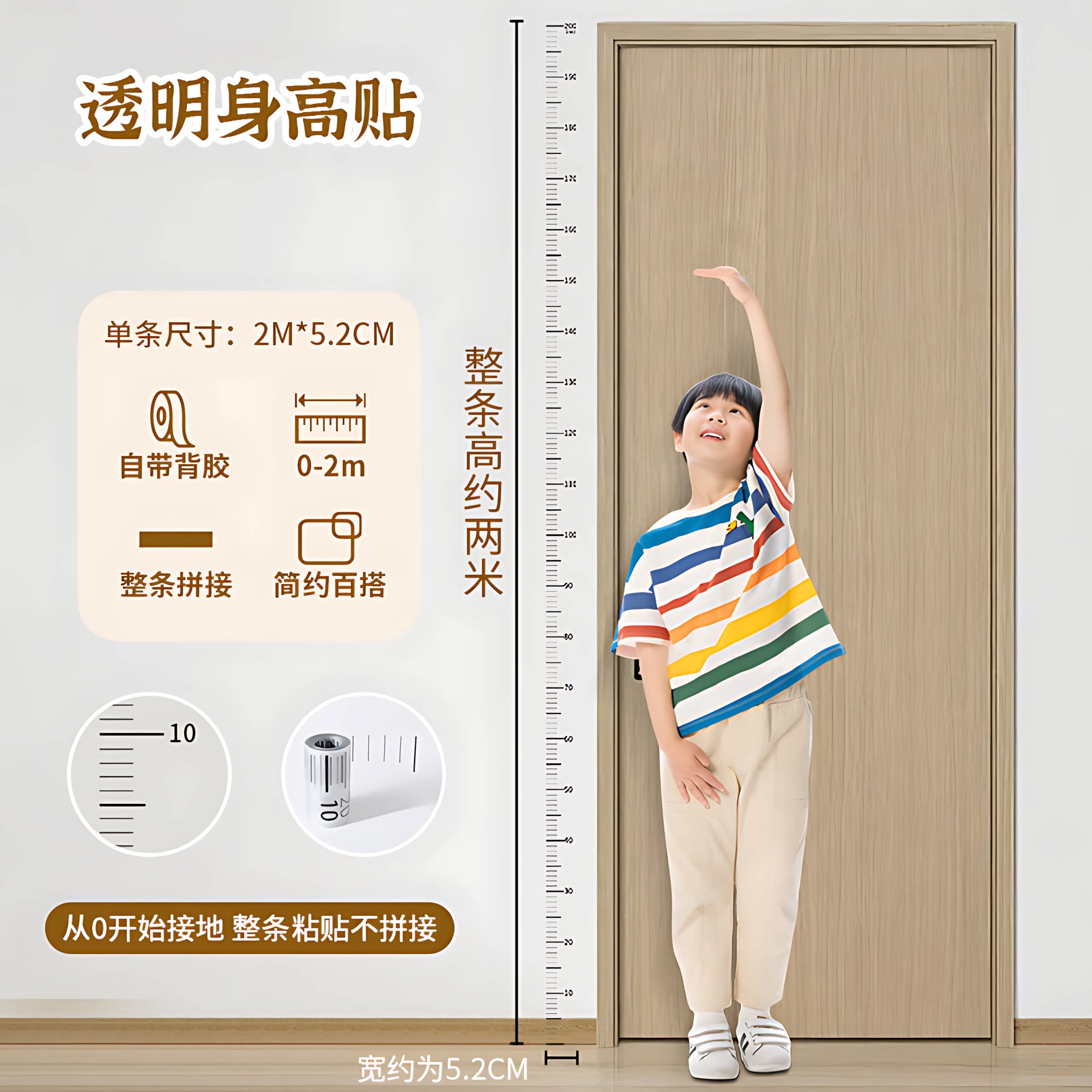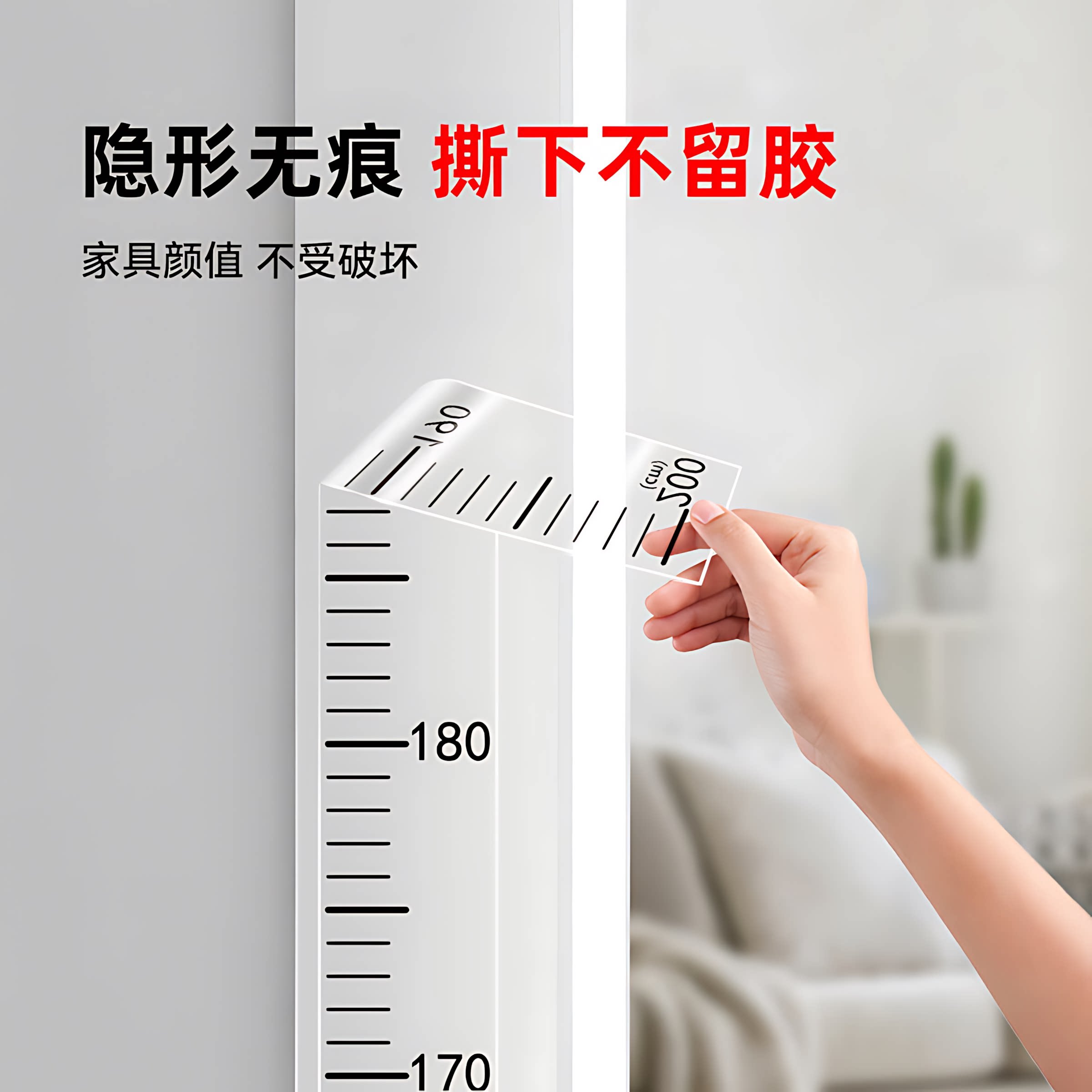 身高贴身高测量墙贴透明儿童宝宝身高贴纸可移除不伤墙精准身高尺
