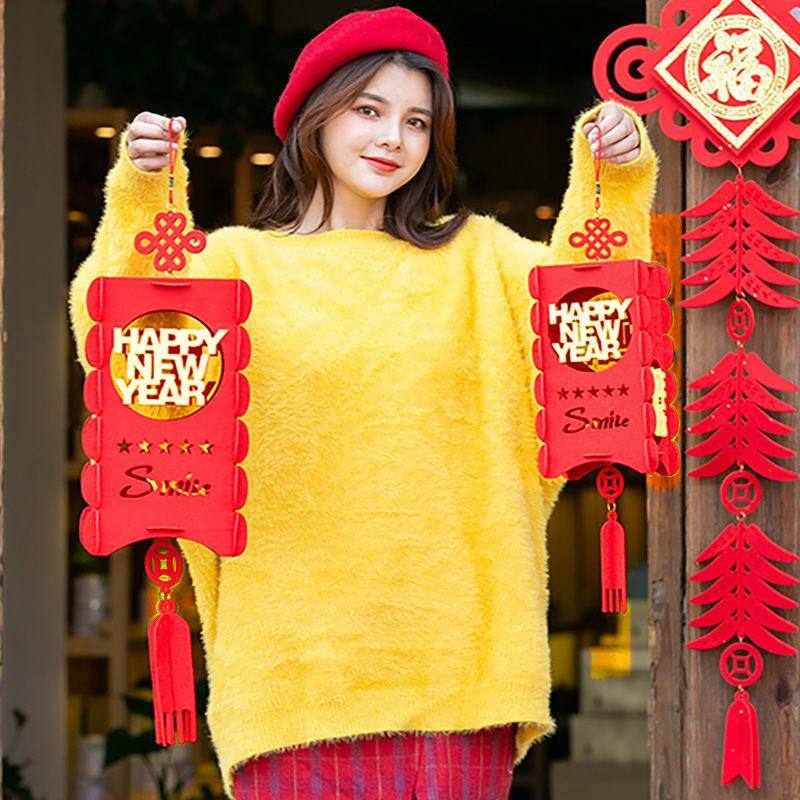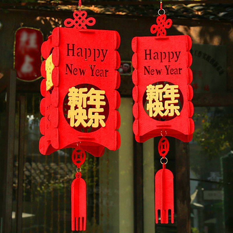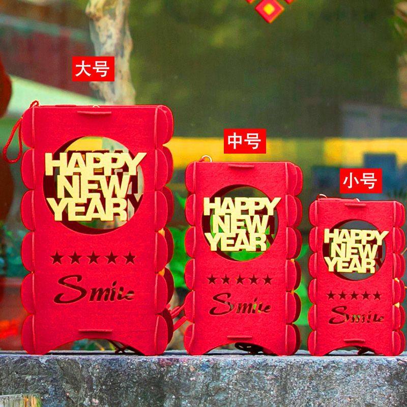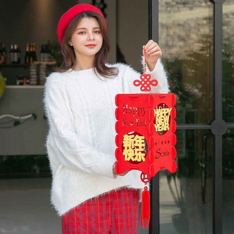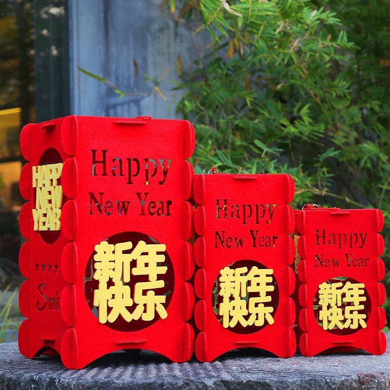 新年快乐灯笼DIY无纺布材料长方形宫灯春节装饰用品节庆礼品挂件
