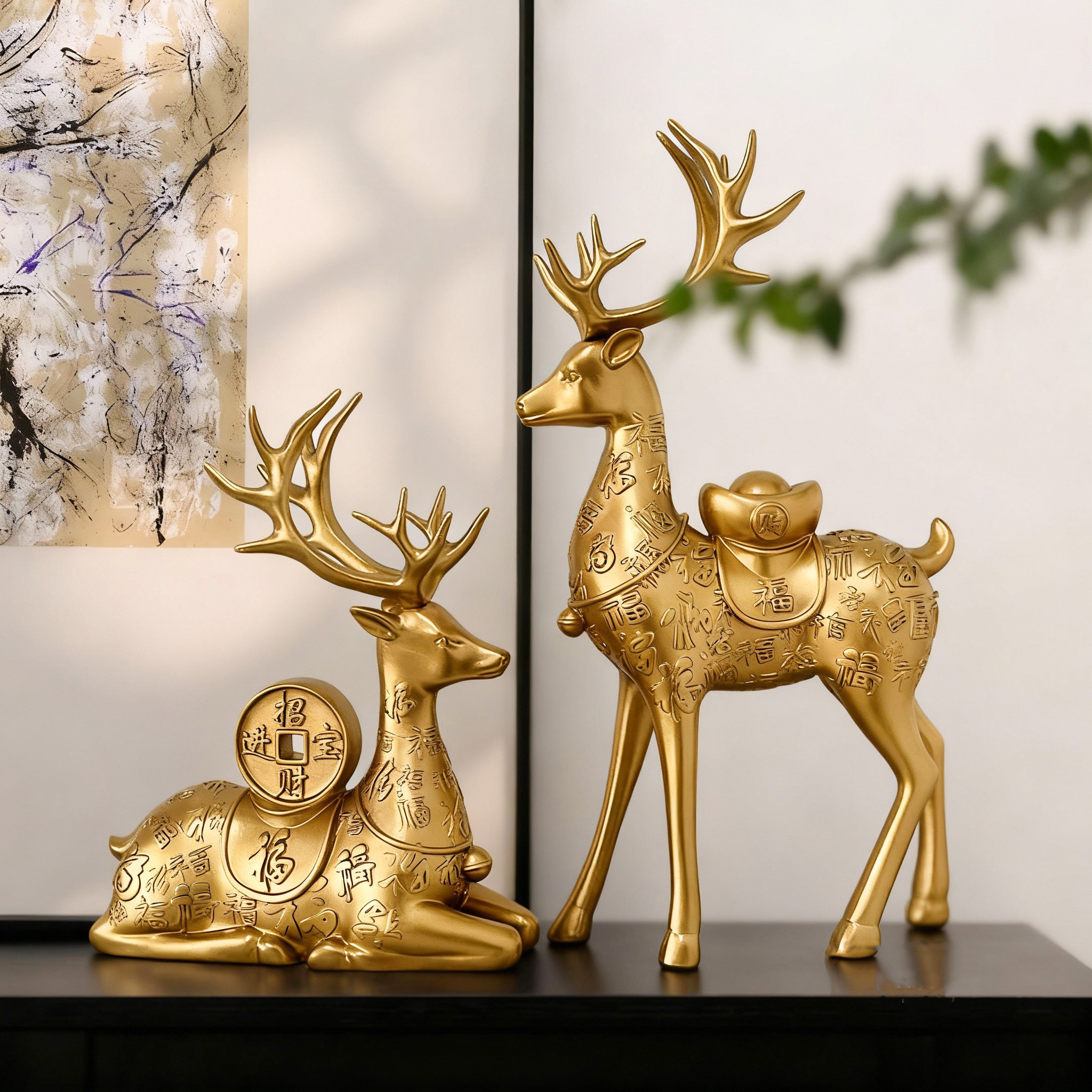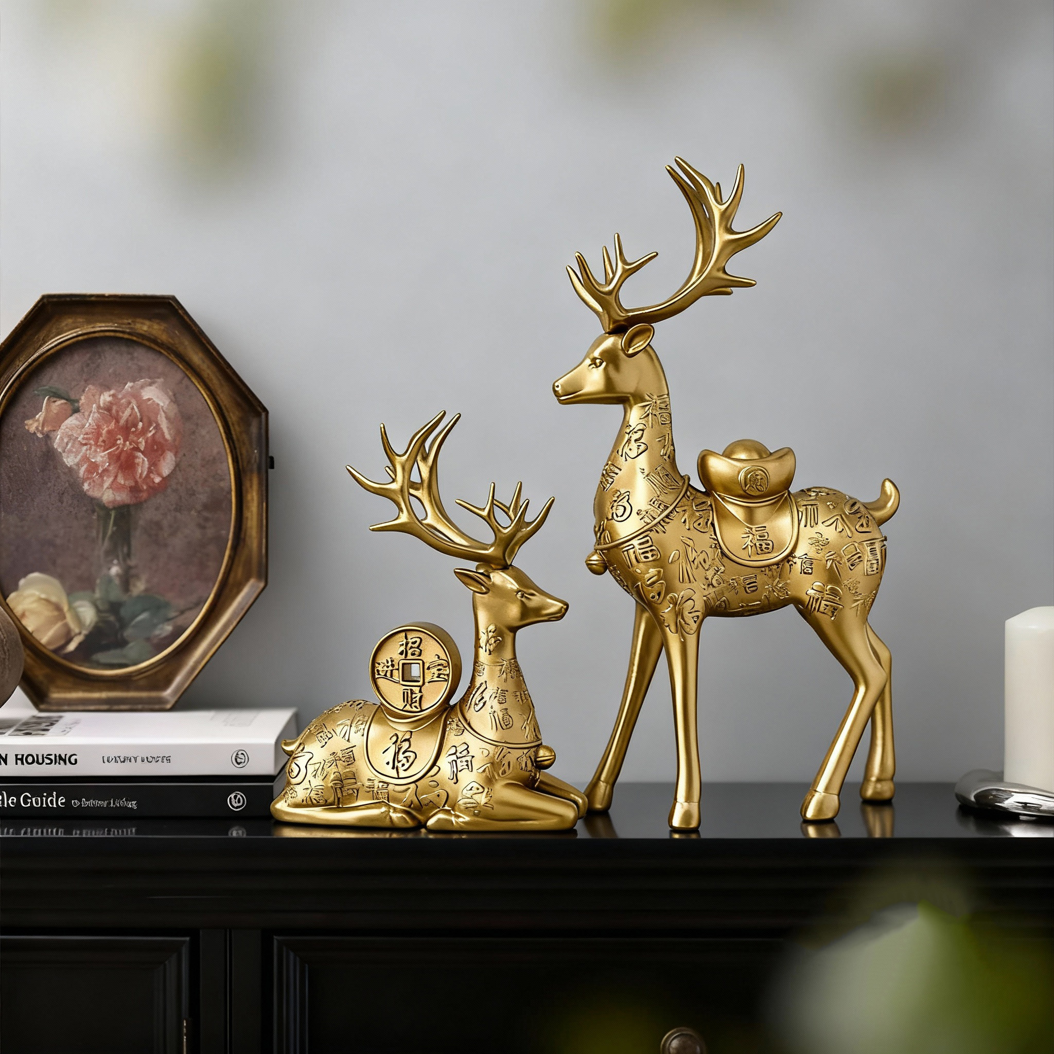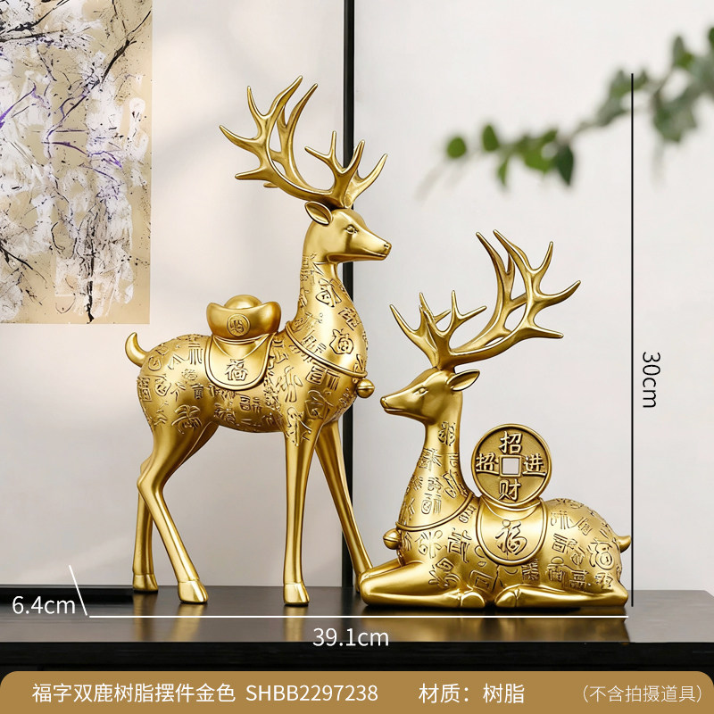 黄铜梅花鹿摆件一对福字招财装饰品家居国学工艺品
