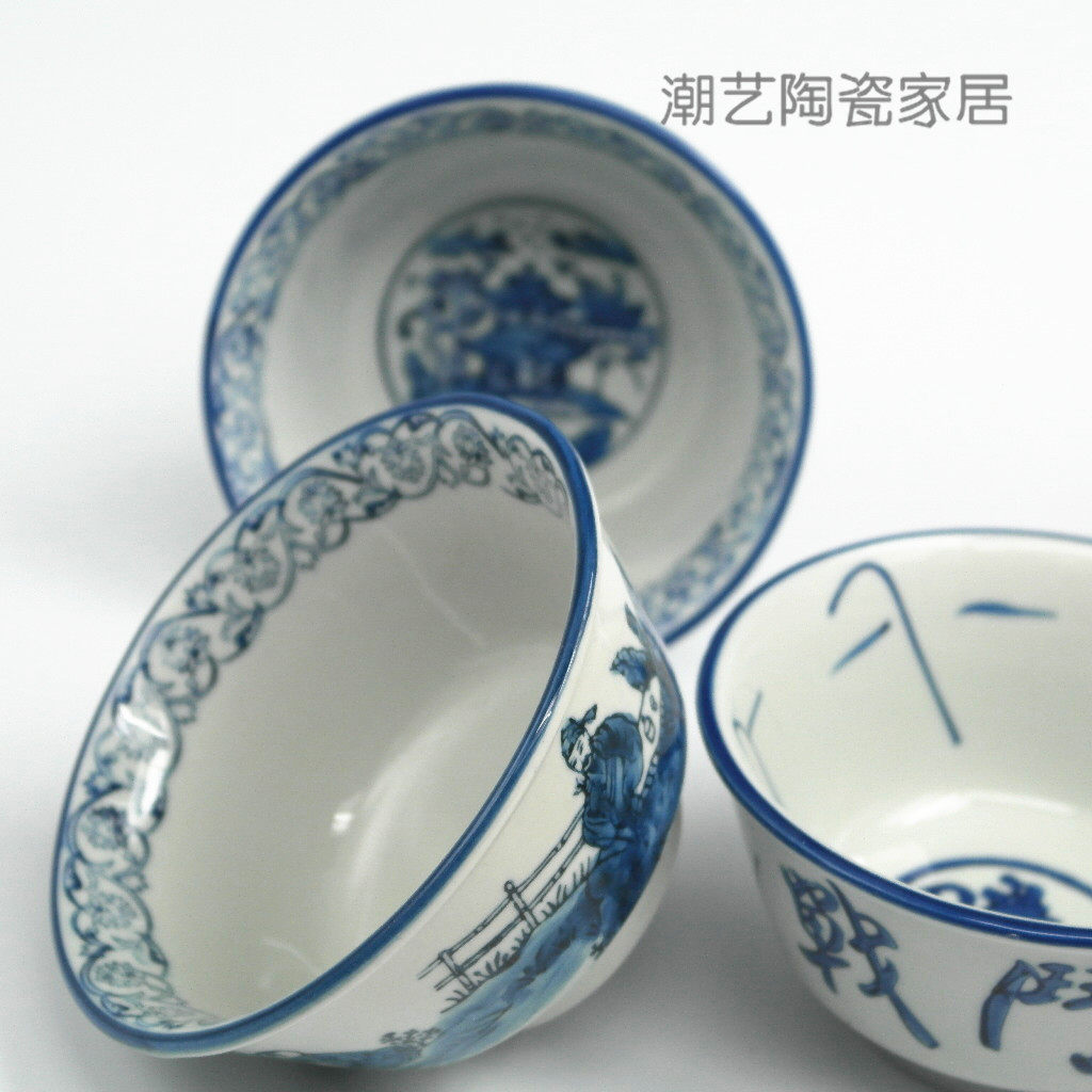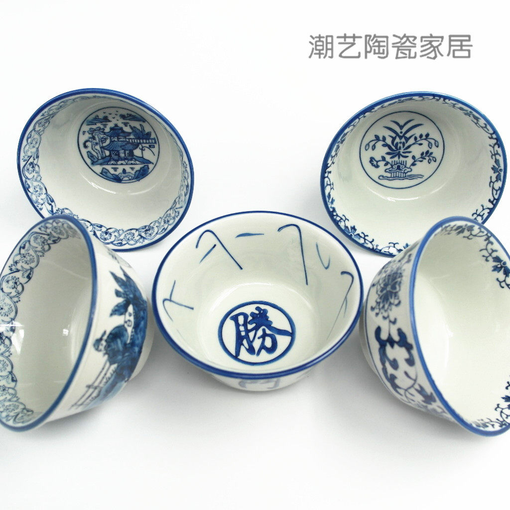 中式手绘青花瓷碗釉下彩创意陶瓷碗筷米饭碗餐具碗碟复古碗战斗碗