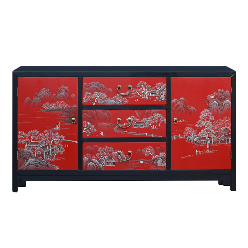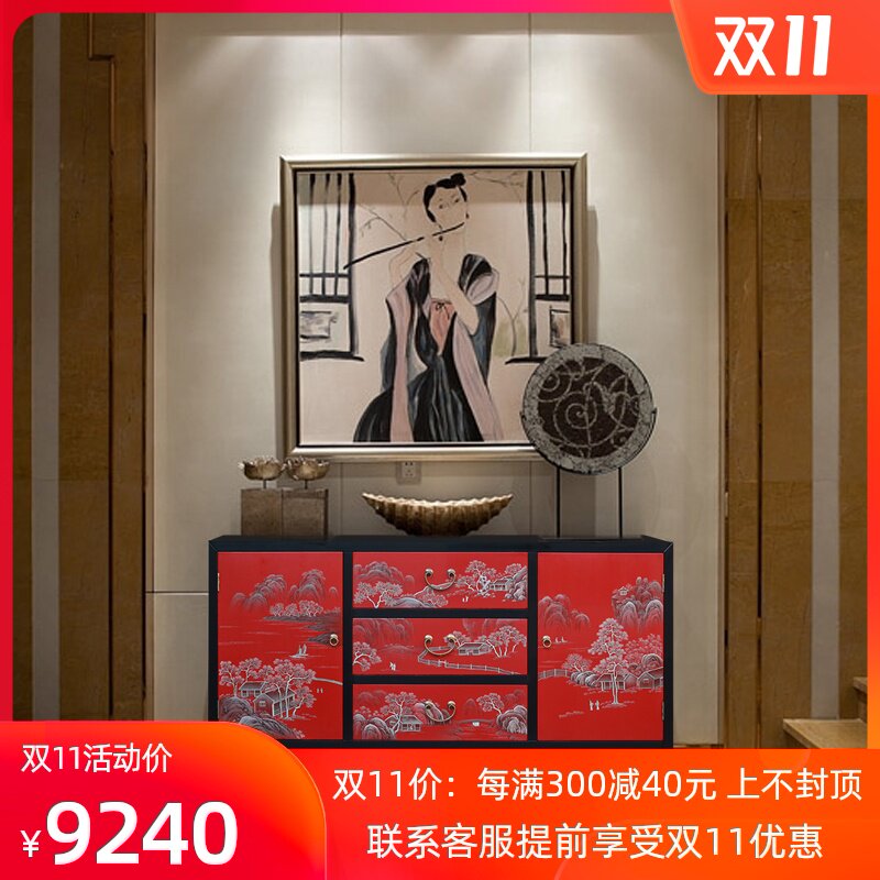 晋元恒 中式漆器彩绘门厅玄关柜 日式漆器家具 装饰玄关收纳鞋柜