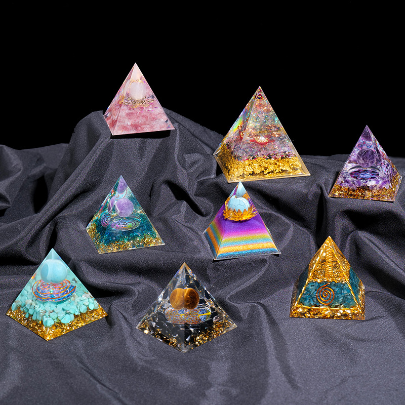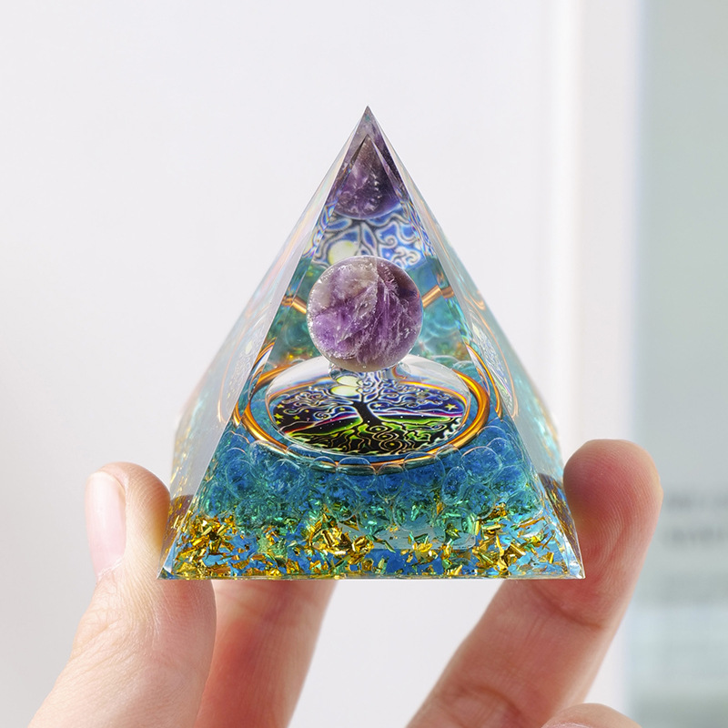 办公室玄学摆件国学水晶球金字塔摆件碎石工艺品家居装饰品能量塔
