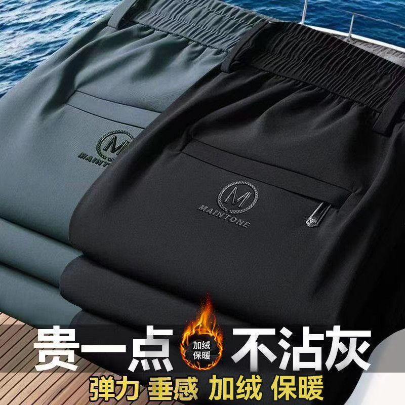 加绒保暖裤子男中青年百搭休闲裤大码松紧腰弹力宽松运动直筒长裤
