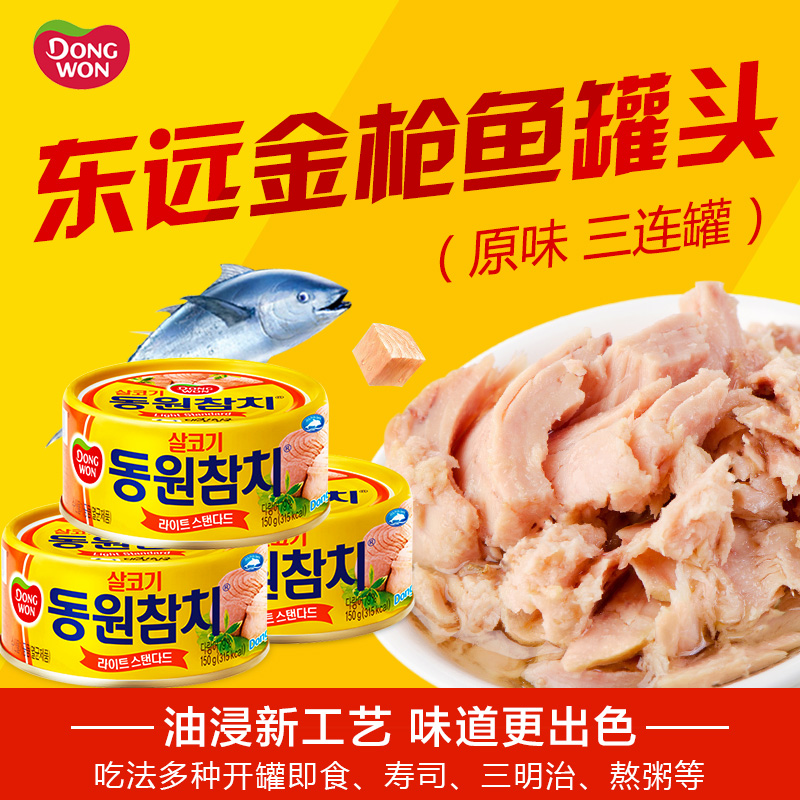 韩国金枪鱼罐头150g*3进口东远吞拿鱼罐头原味油浸即食饭团披萨用