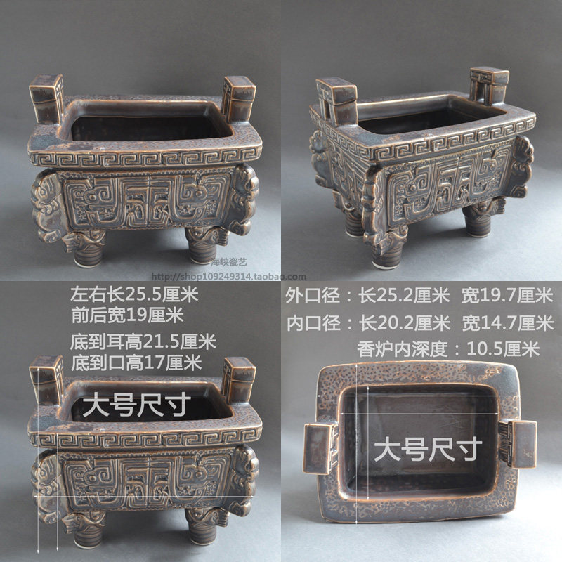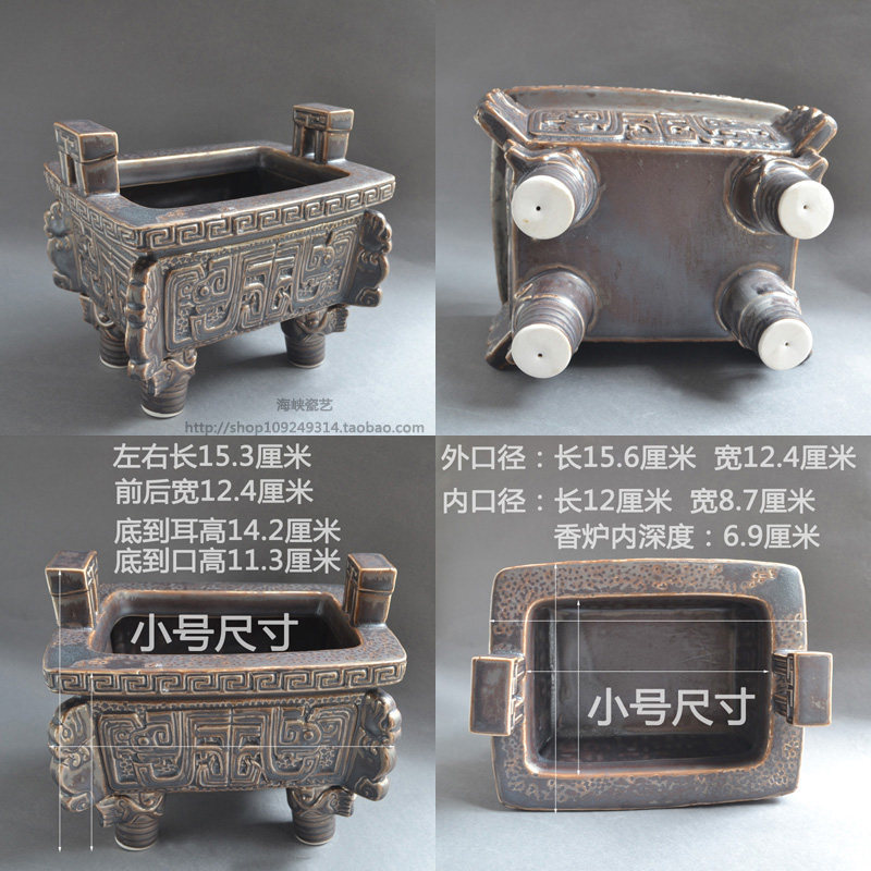 四脚长方形鼎炉仿古四角四足香鼎炉家用供奉佛前上香方形香炉陶瓷