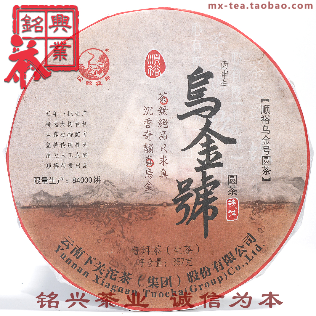 【铭兴】下关茶厂2016年 顺裕 乌金号圆茶 357g 铁饼生茶普洱茶叶