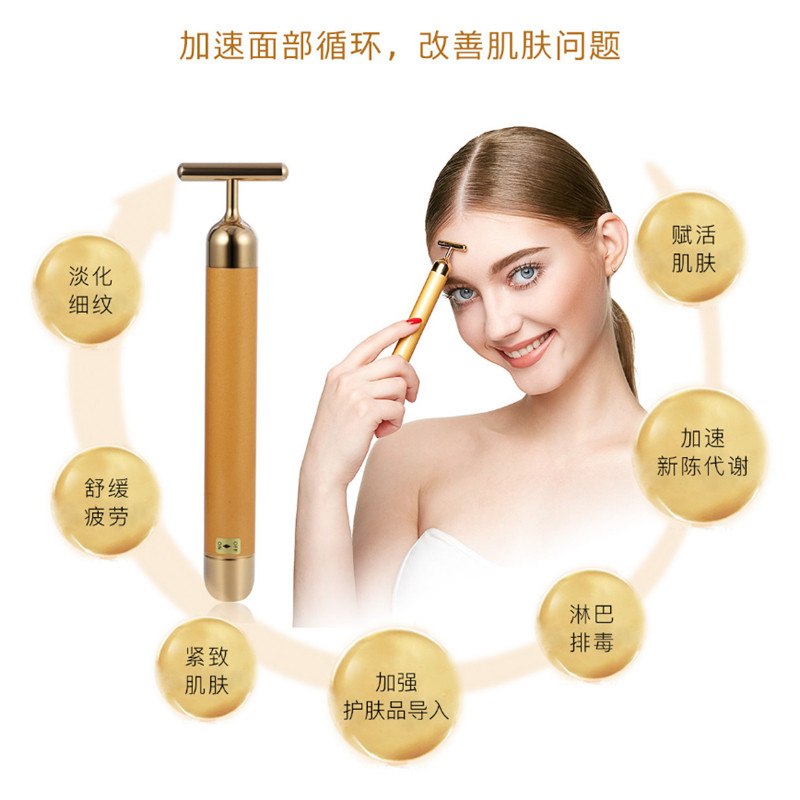 新款24k黄金电动美容棒男女瘦脸器提拉紧致美容仪淋巴V脸部按摩器