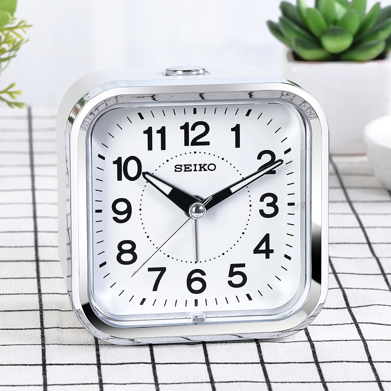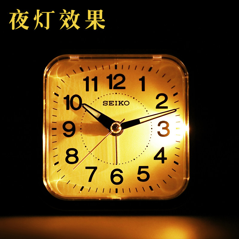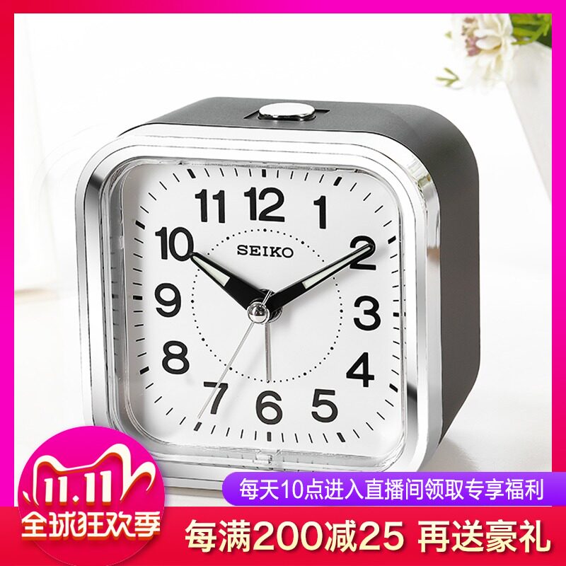 日本精工时钟卧室床头创意时尚贪睡夜灯夜光静音学生小闹钟QHE130