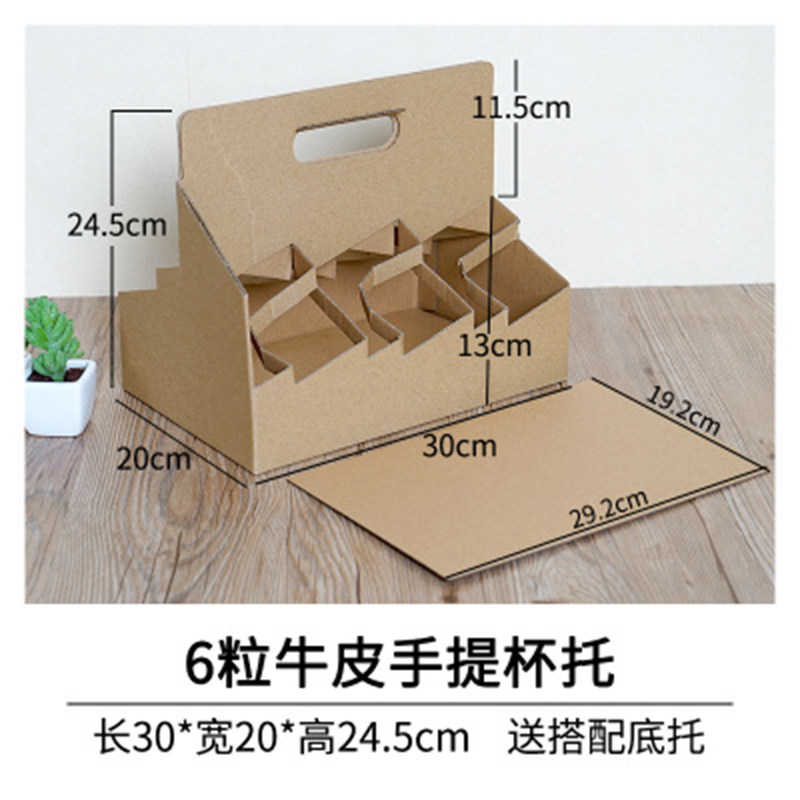 牛皮纸手提4 6杯装奶茶咖啡果汁外卖打包盒加厚饮料托盘定制印刷