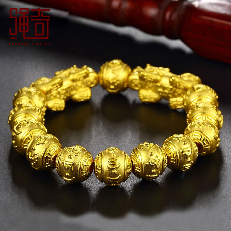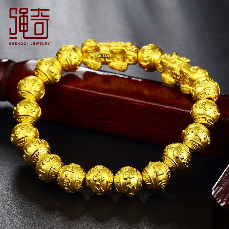 黄金貔貅手链男足金999转运珠路路通回龙款金珠手串首饰