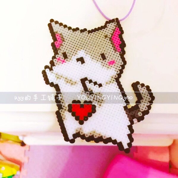 手作原创设计热卖拼豆猫咪成品 像素可爱钥匙扣男女学生精品挂件
