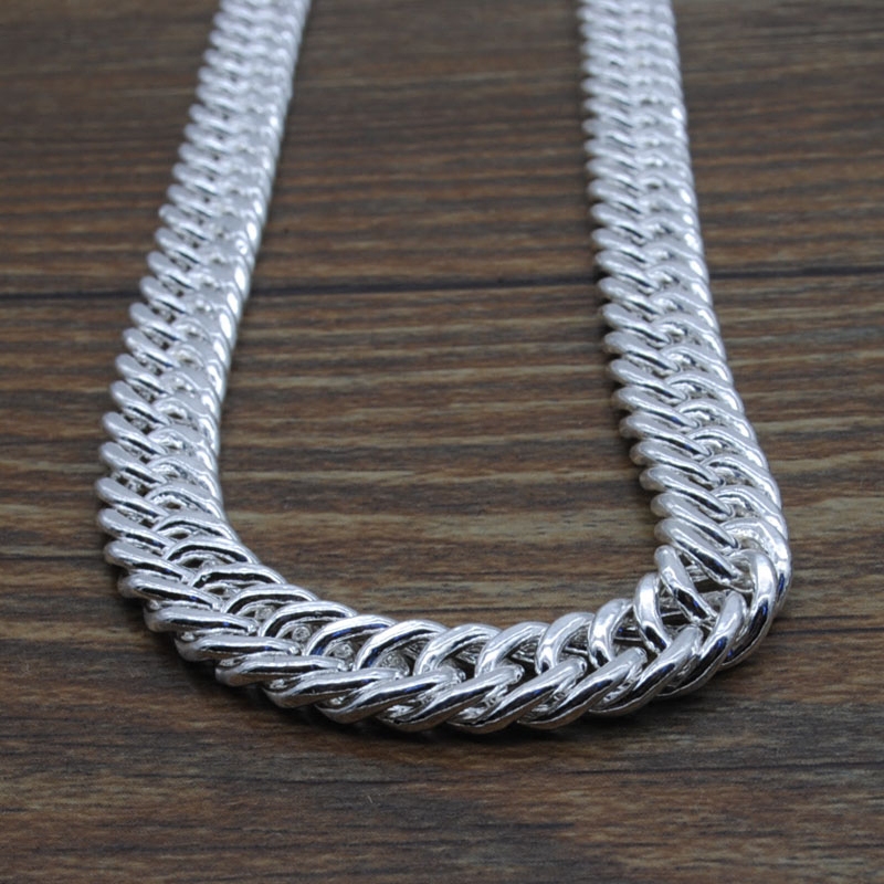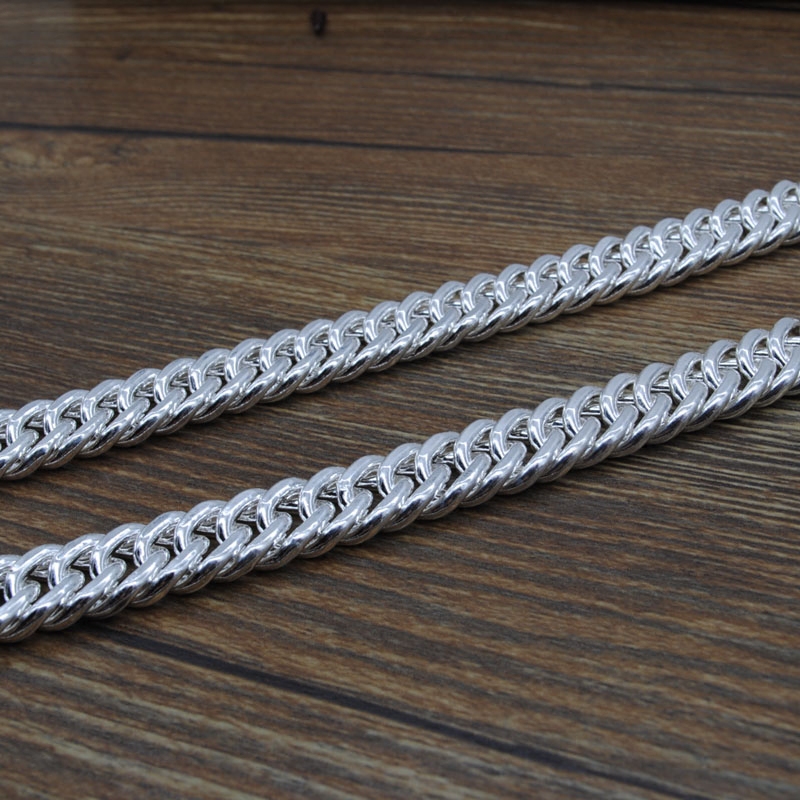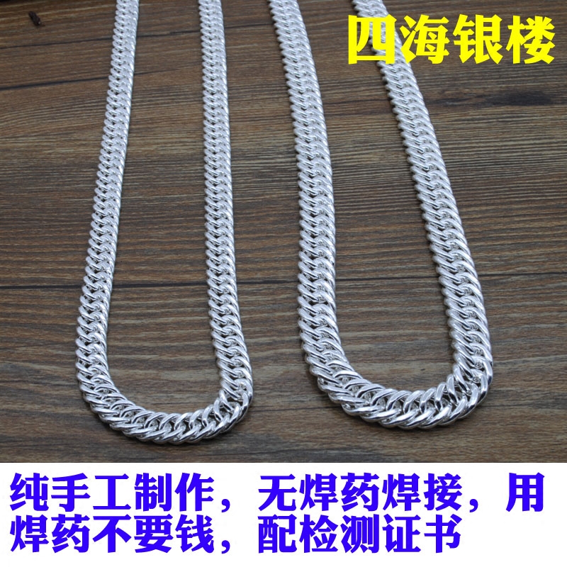 男士项链999纯银马鞭链纯手工银链儿童扁链平链粗款霸气嘻哈项链