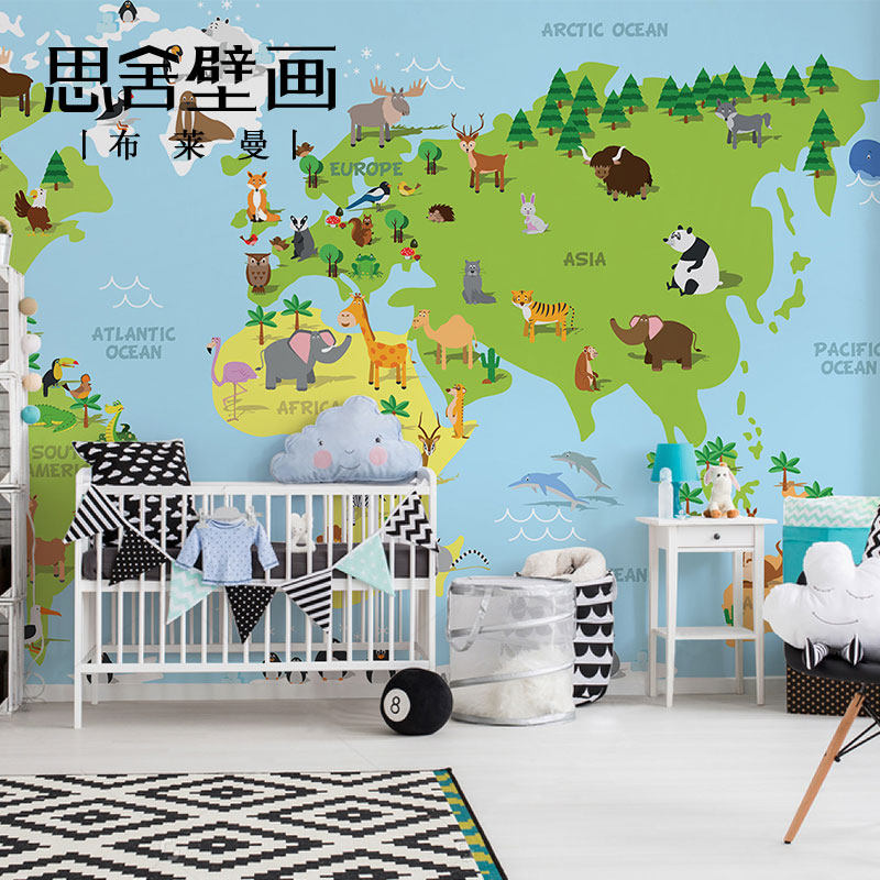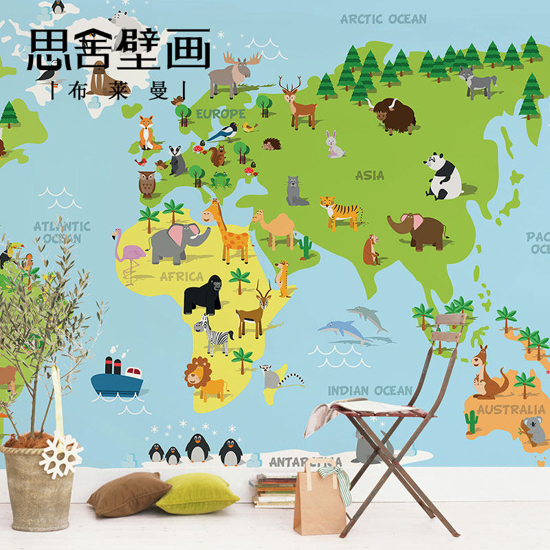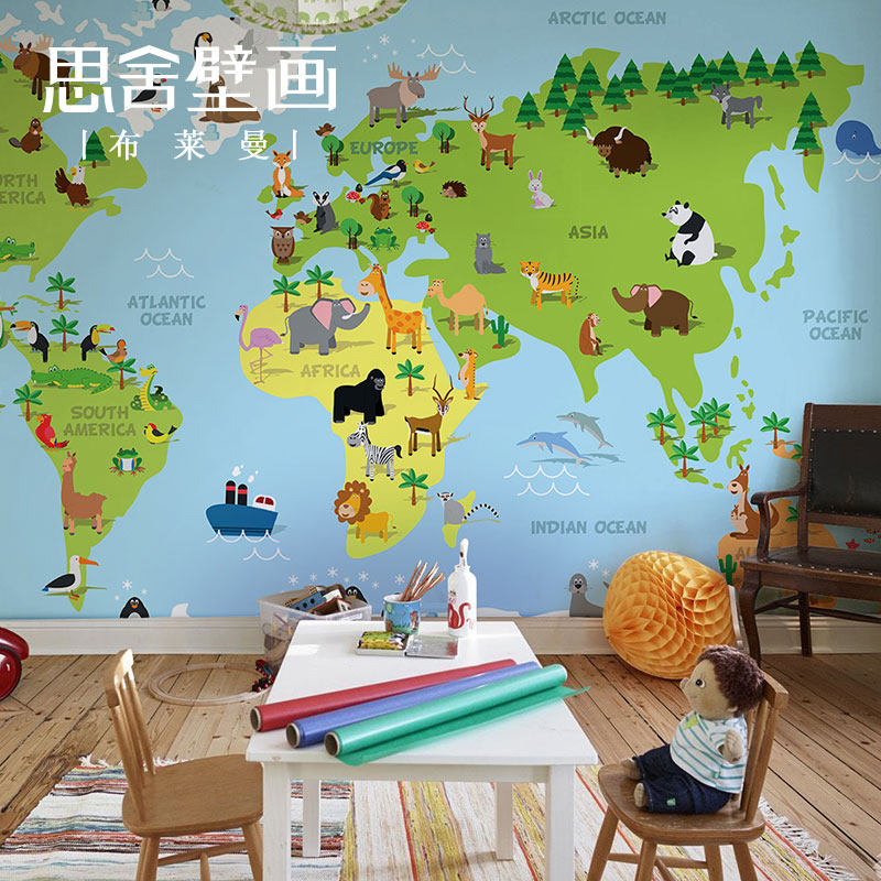 思舍手绘卡通地图壁纸儿童房卧室男孩背景墙纸个性定制壁画墙布