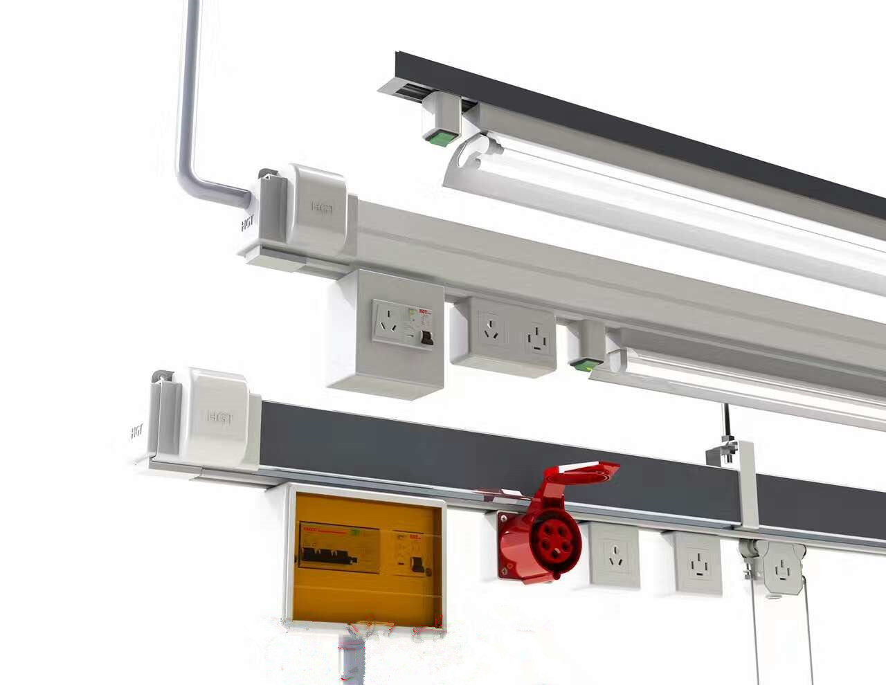 服装缝制衣车供电灯架车间用电灯架工厂灯架布电插座桥架母线槽