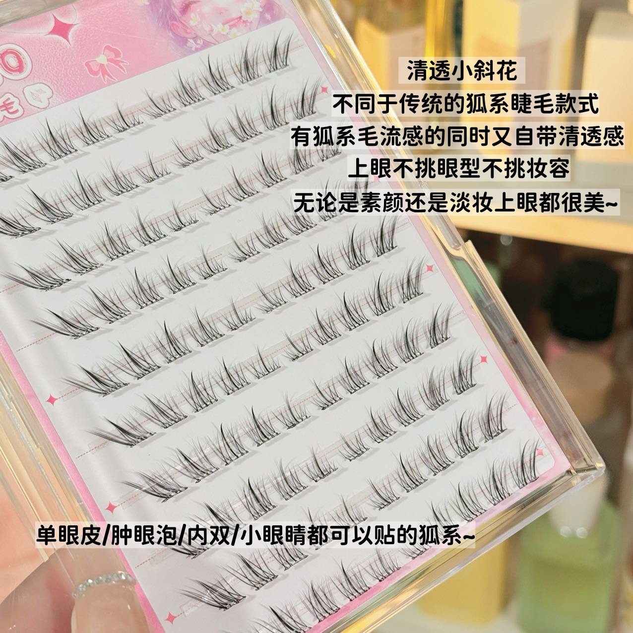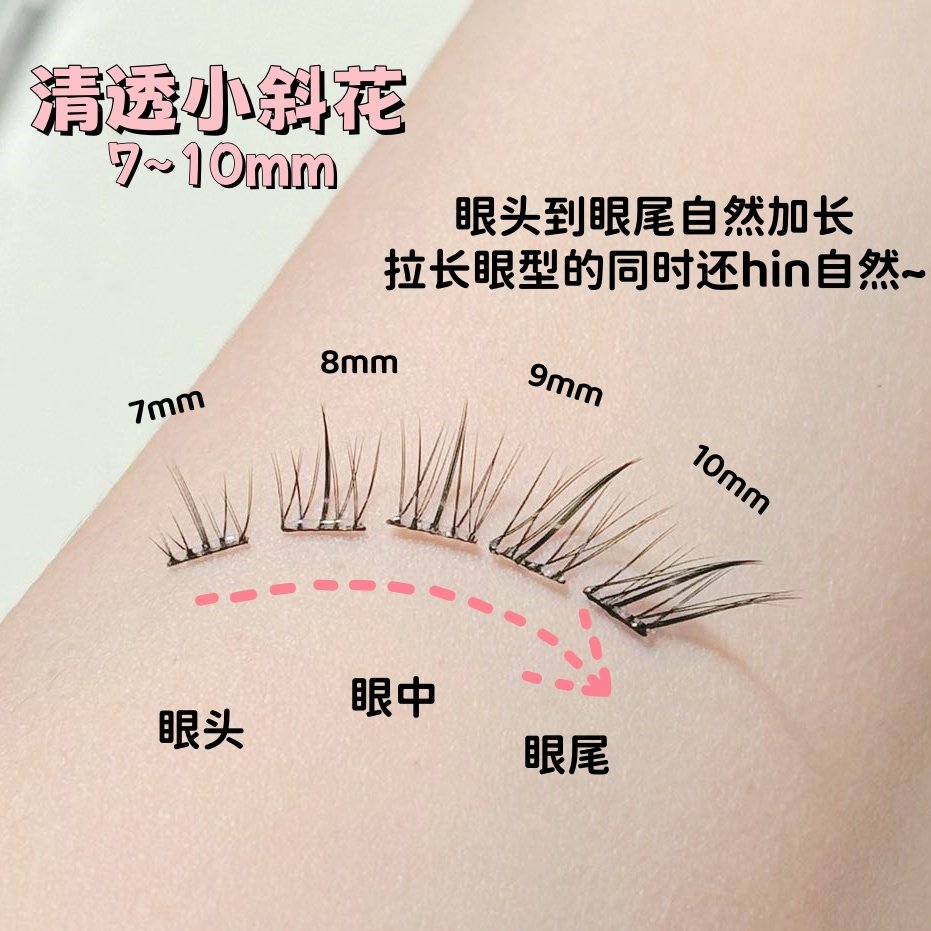 JECO免胶水短款小斜花假睫毛女自然仿真清透狐系斜飞胶水粘眼睫毛