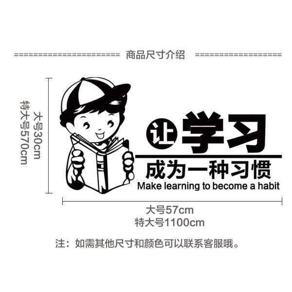 让学习成为习惯 儿童房幼儿园宝宝房间墙壁装饰励志鼓励贴画卡通