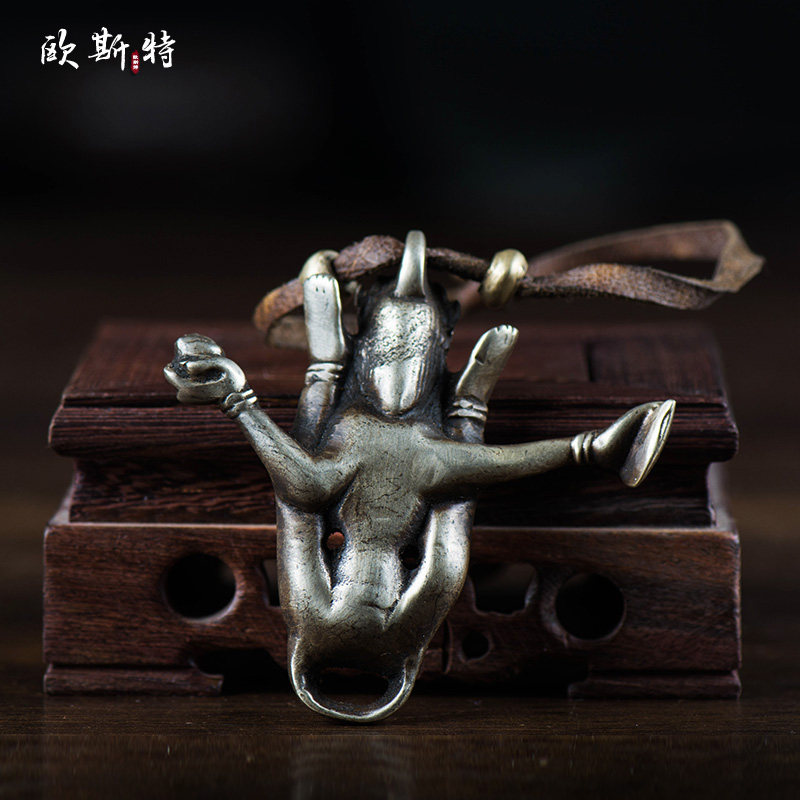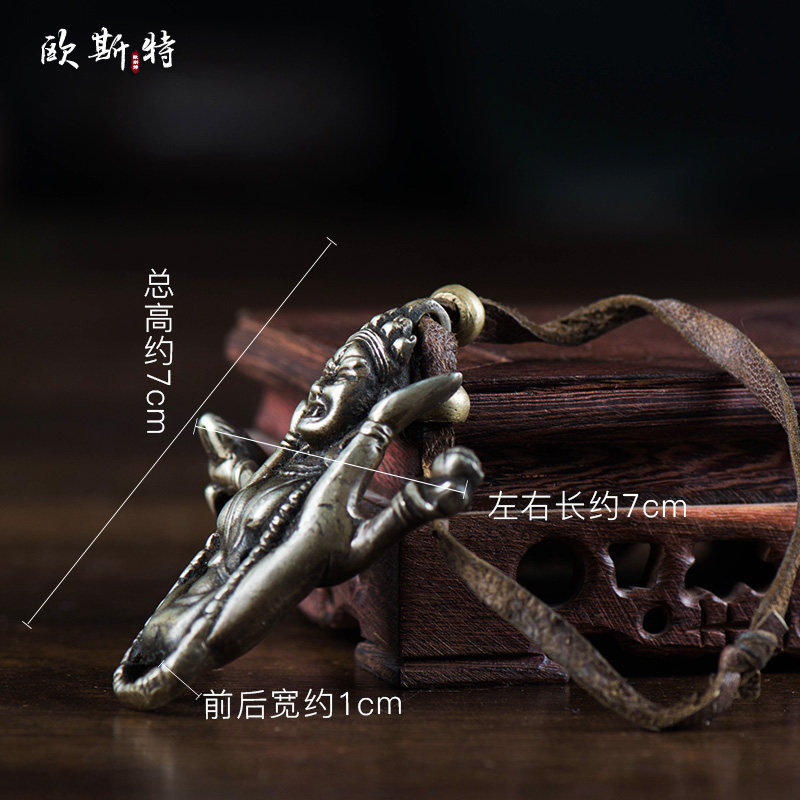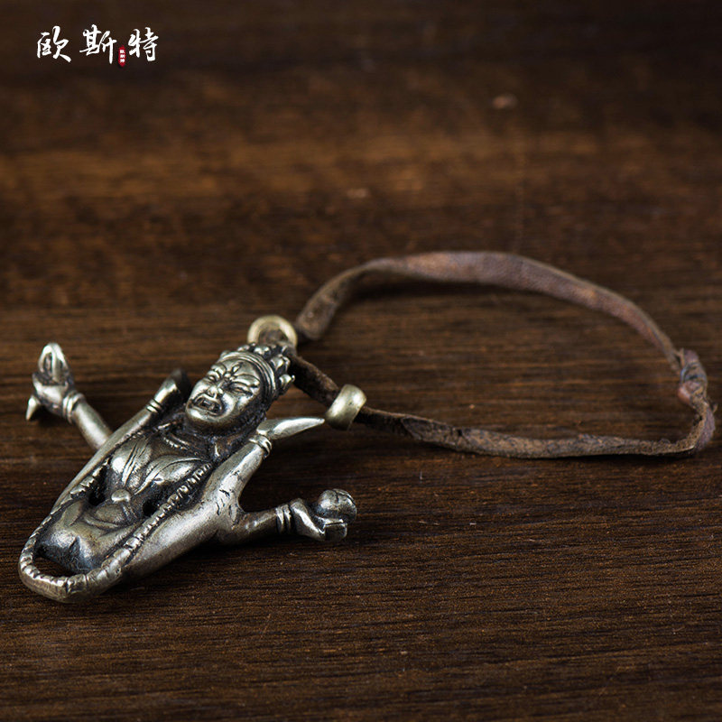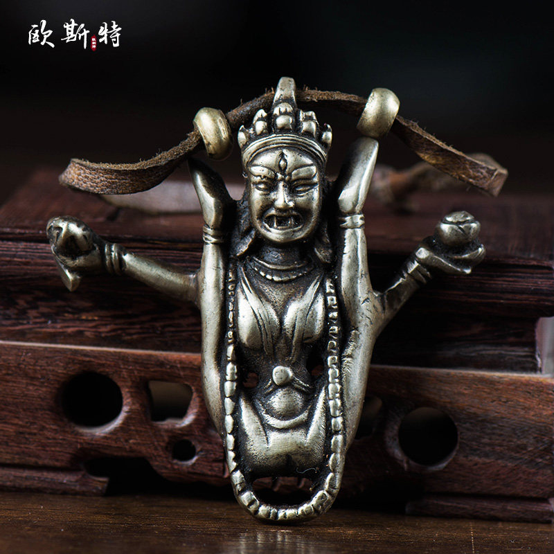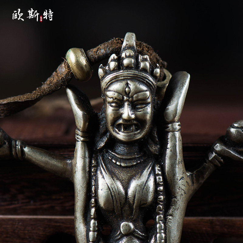 尼泊尔藏传密宗纯铜手工佛像金刚瑜伽母空行母佛像皮绳挂件7cm