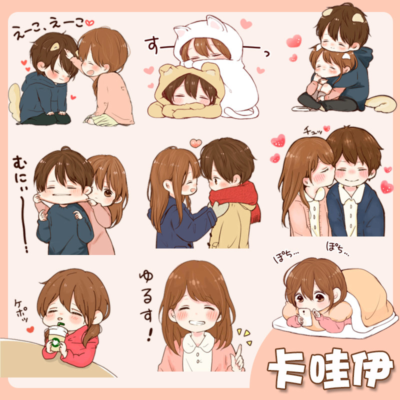 png免抠透明素材可爱卡通日系萌妹女孩男孩表情头像情侣图片素材