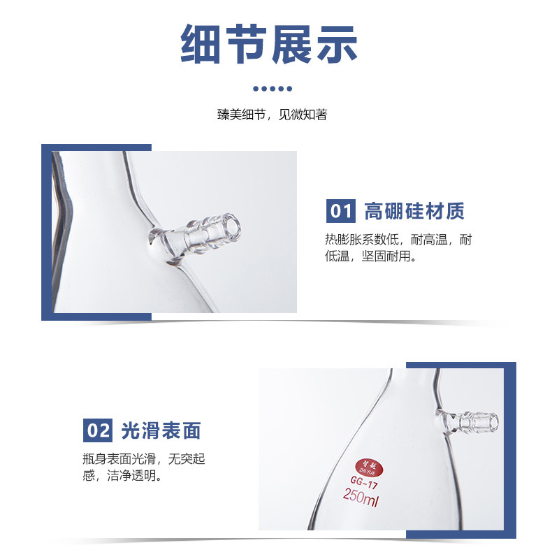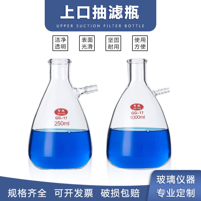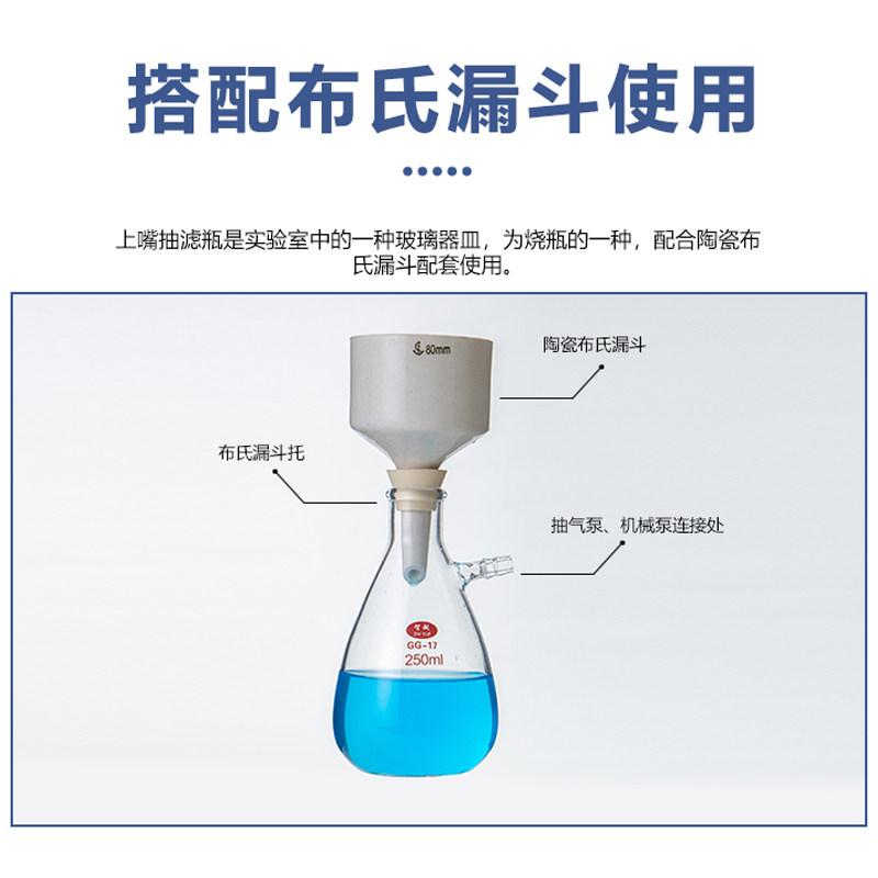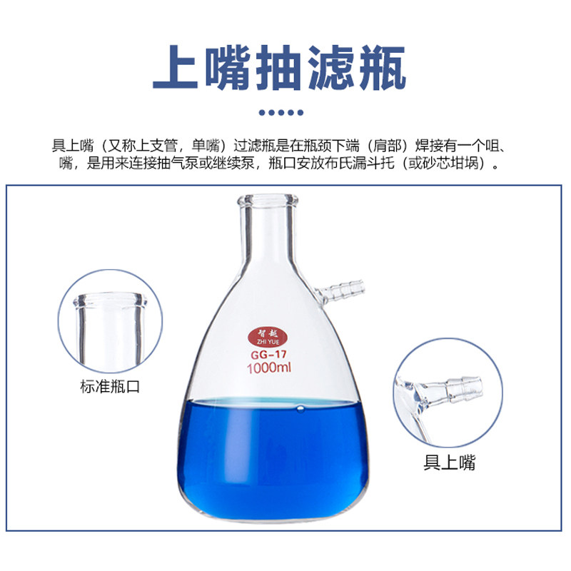 具上嘴抽滤瓶250/500/1000/2500ml真空单嘴过滤瓶 高硼硅厚料