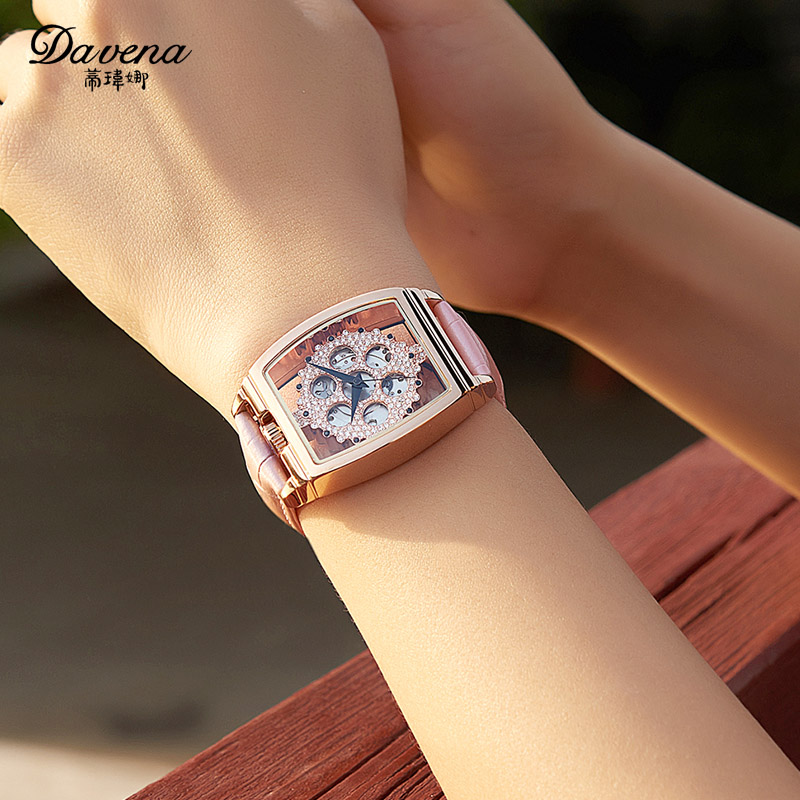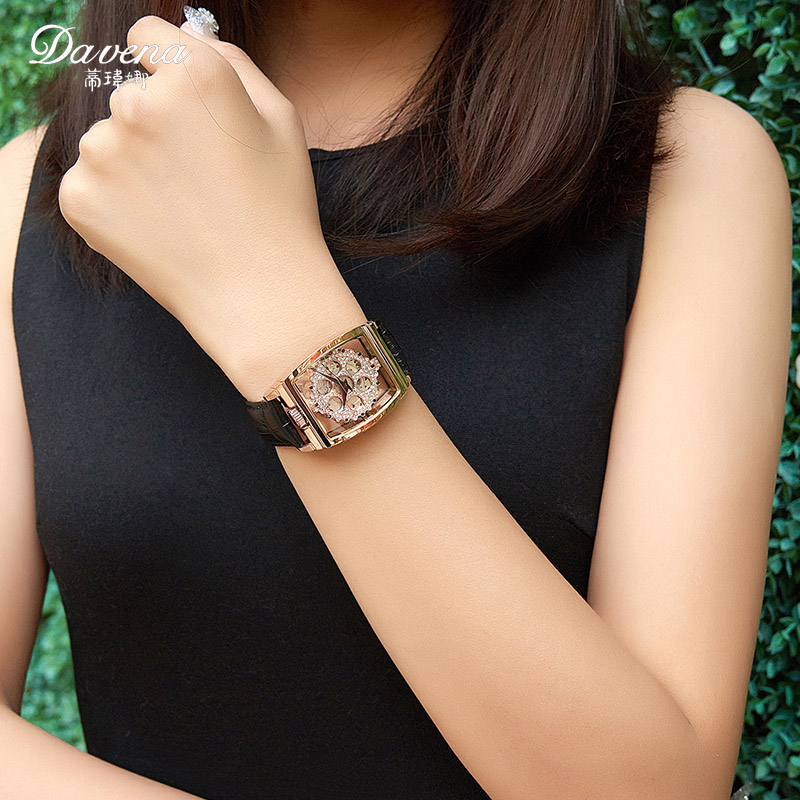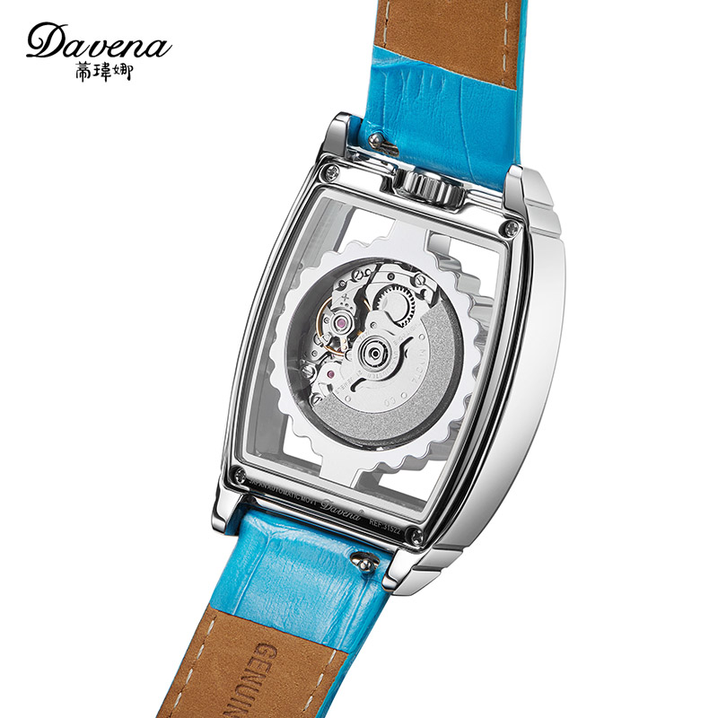 Davena蒂玮娜真皮带手表个性镂空全自动机械表时尚男女手表中性表