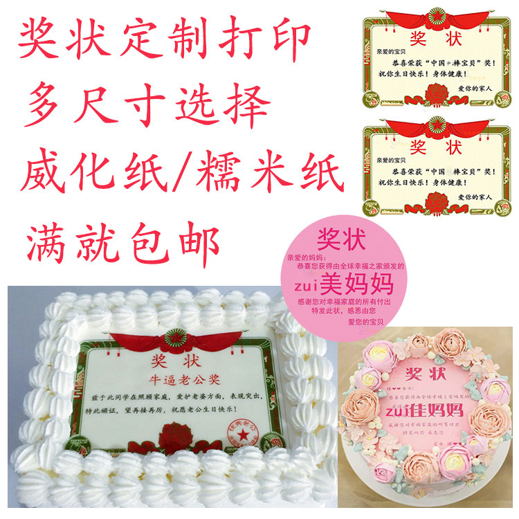 可食用糯米纸糖纸威化纸打印奖状生日蛋糕装饰卡通图案支持定制