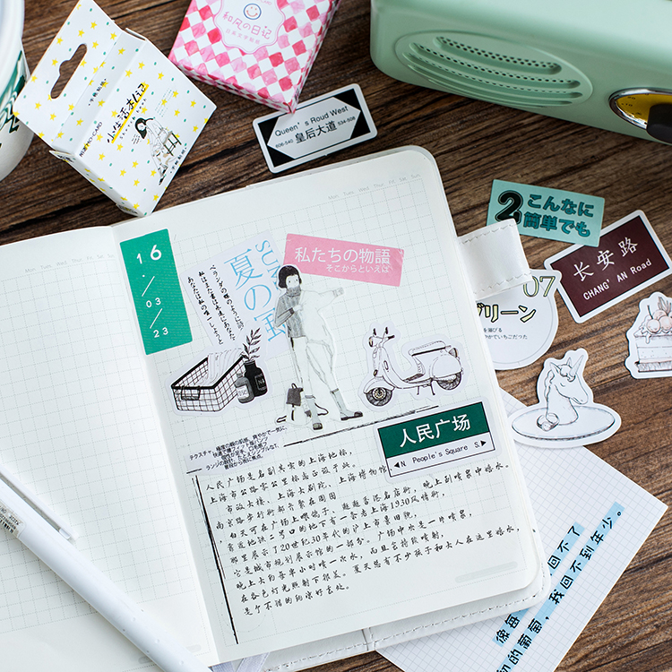 创意和风盒装贴纸 日文拼贴杂志手帐韩国文艺少女手账贴画 多款选