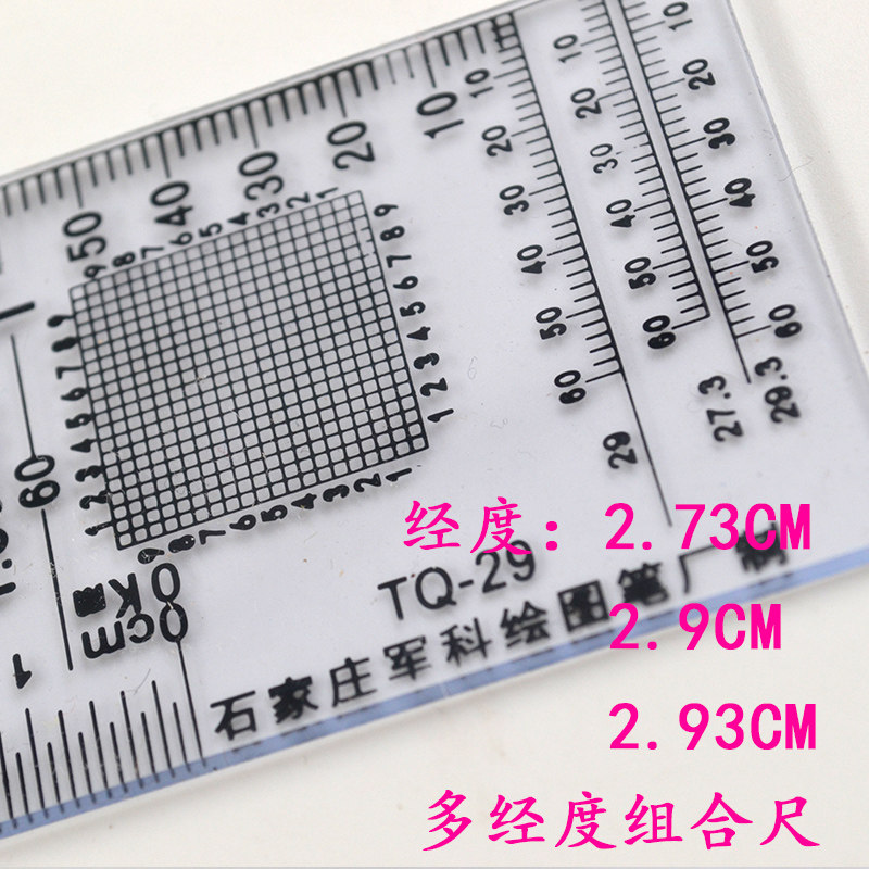军绘TQ-29经纬度尺 测量尺 地理坐标尺 直角尺 距离量算尺 地图作业尺 比例尺 1:5万经纬度尺识图用图指挥尺