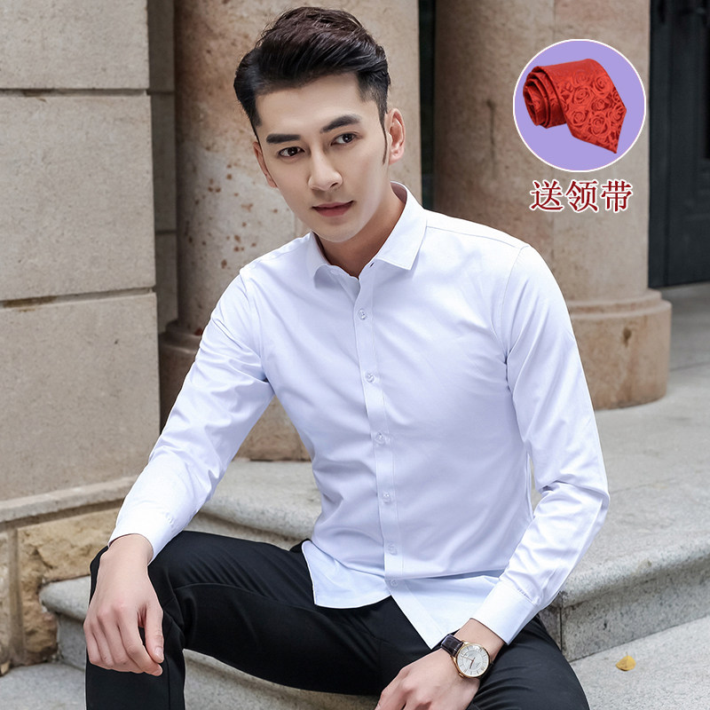 白衬衫长袖男结婚新郎内穿忖衫婚礼打底衫内搭衬衣男土小领白称衫