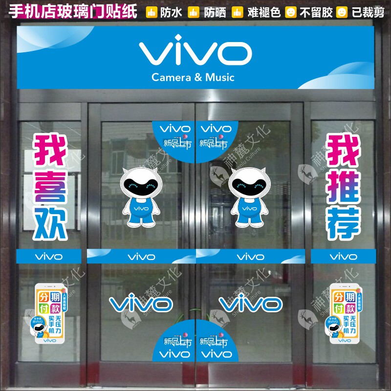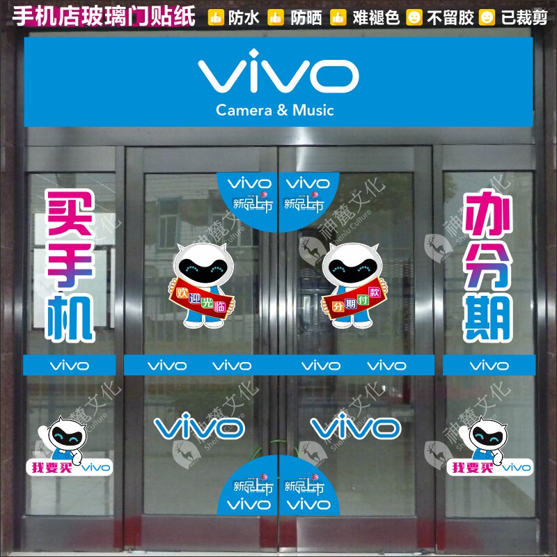 VIVO手机店专卖店玻璃门装饰贴纸橱窗腰线防撞条门角防水不褪色