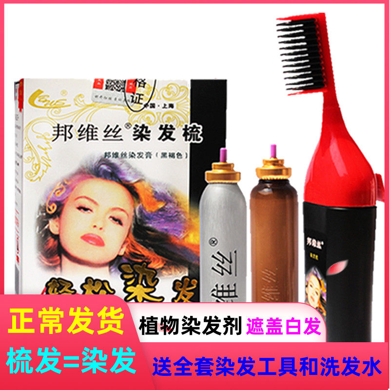 邦维丝染发剂正品泡泡沫染发膏男女遮白发自然黑色植物天然染发梳