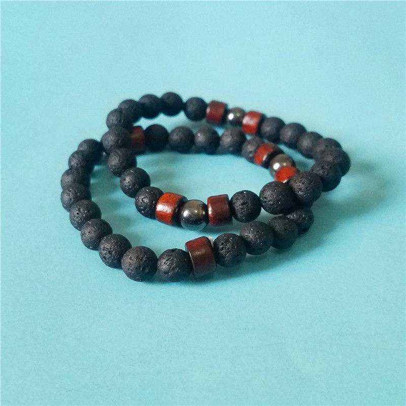 简约复古火山石木珠手串天然石手链能量手链潮情侣手饰男女款手串