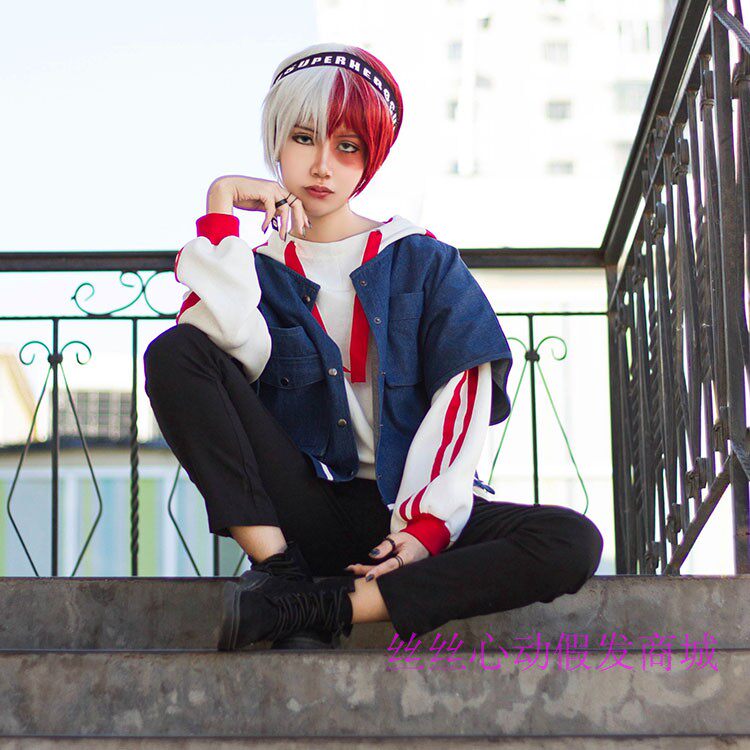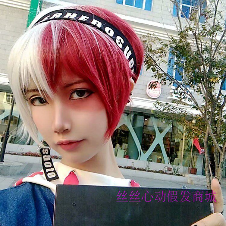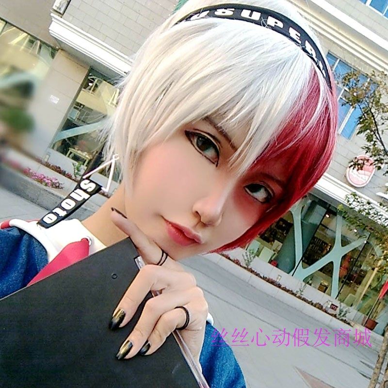 我的英雄学院轰焦冻cos假发 红白拼色双色cosplay假发现货包邮