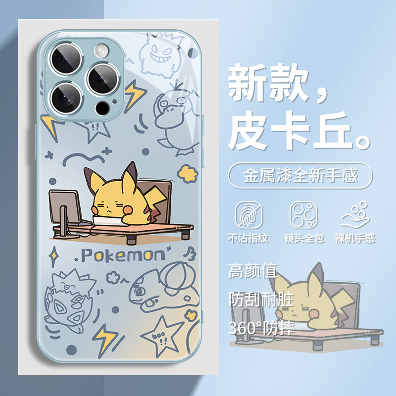 宝可梦适用苹果16pro手机壳17新款iphone15皮卡丘14潮牌卡通13动漫12promax镜头全包11高级感xs个性xr玻璃air