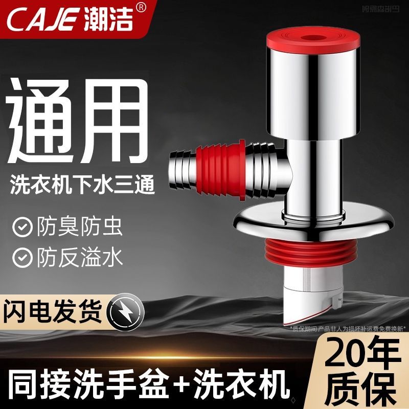 潮洁下水管三头洗衣机排水管分水器地漏洗手盆接头对接水流器三通