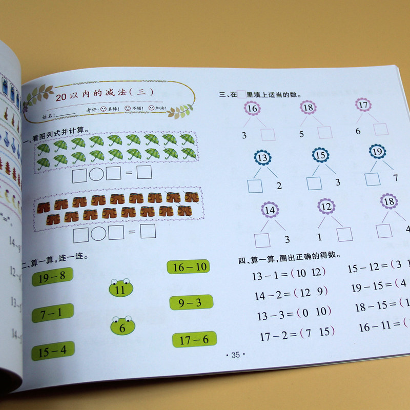 3-6岁幼儿园数学练习册20以内加减法算术题看图列式计算测试卷练习题试卷学前班中班大班二十以内口算心算速算分解小学思维训练本