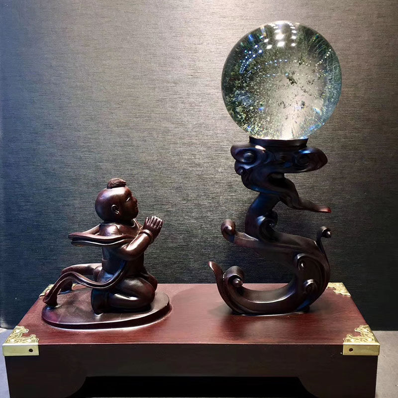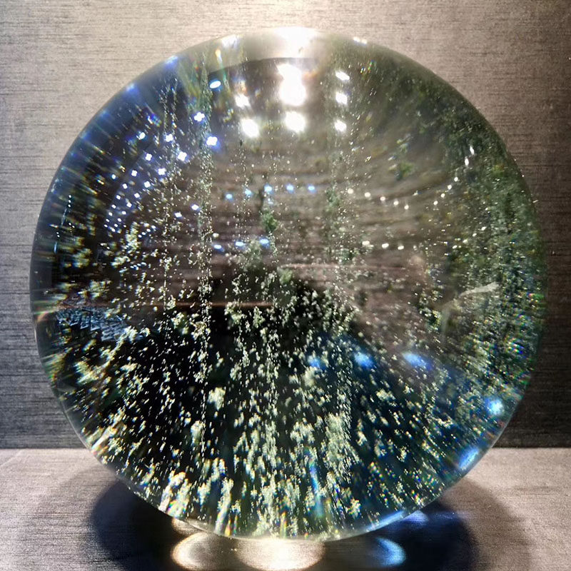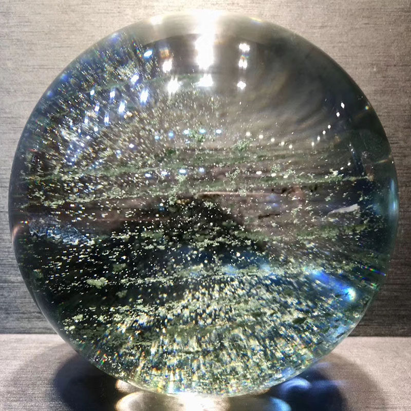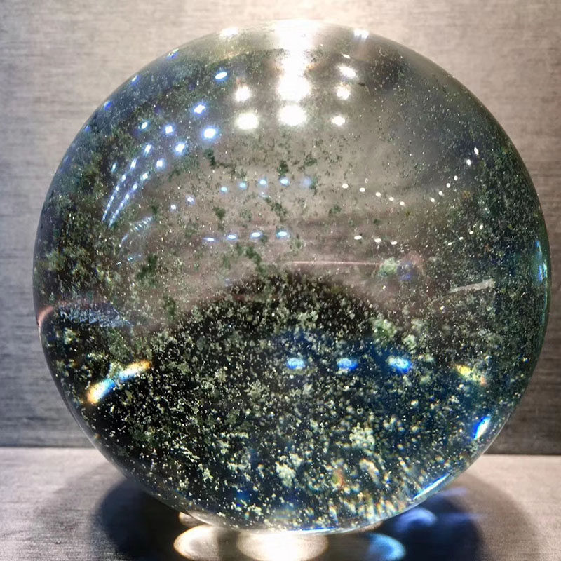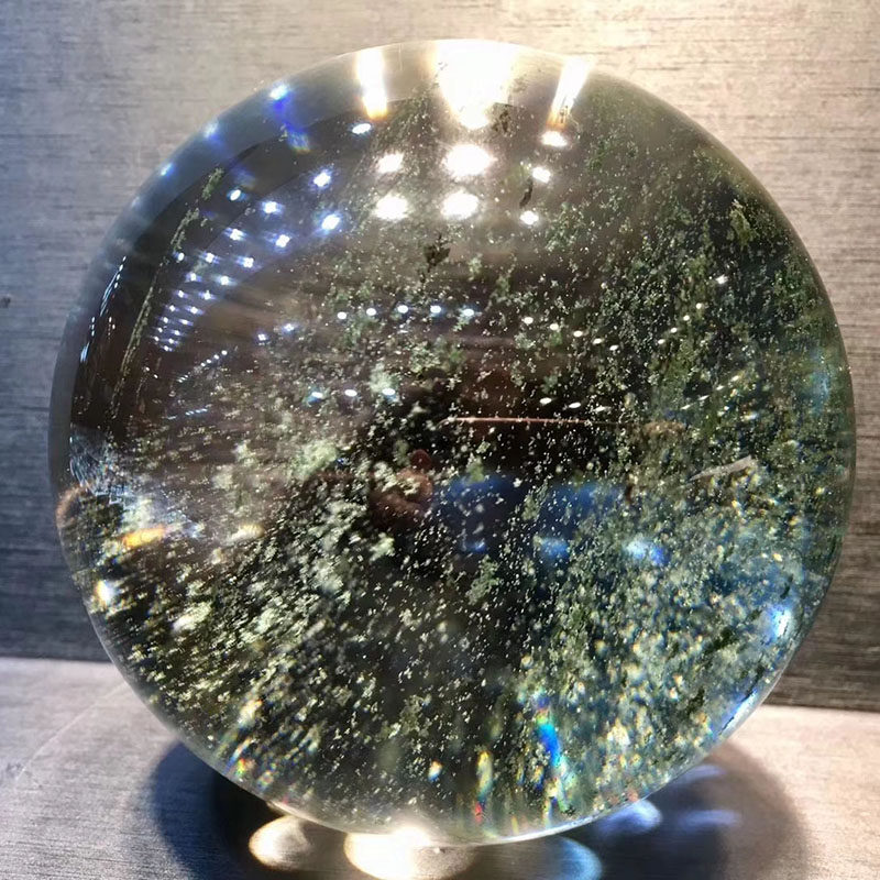 魅晶天然绿幽灵球千层山聚宝盆水晶球 星光绿幽灵水晶球风水摆件