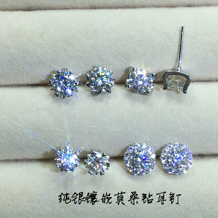 莫桑钻纯银镶嵌耳钉进口莫桑石四六爪单只50分 一对1克拉钻耳钉情