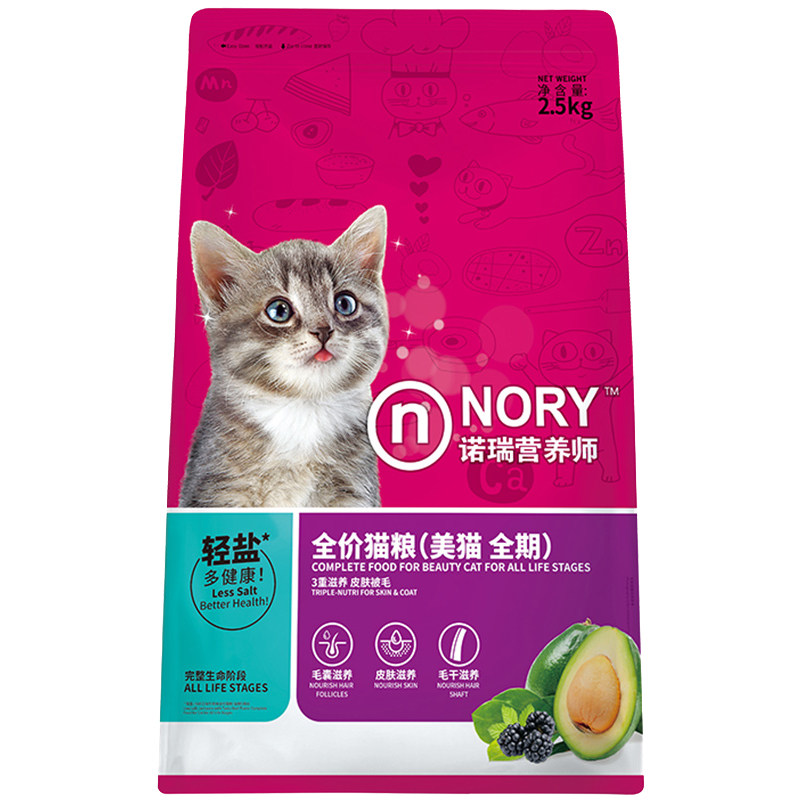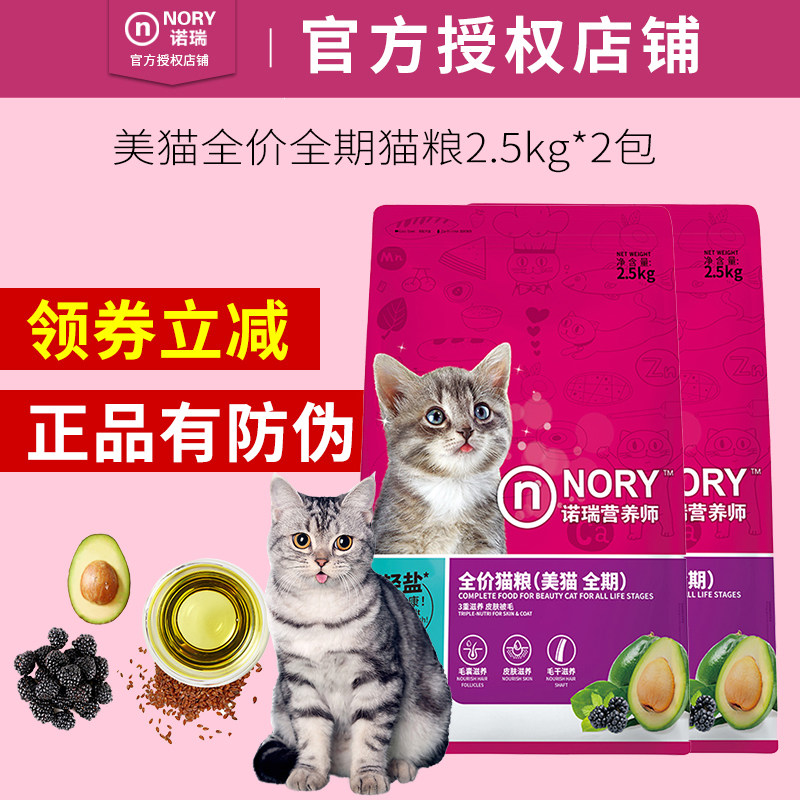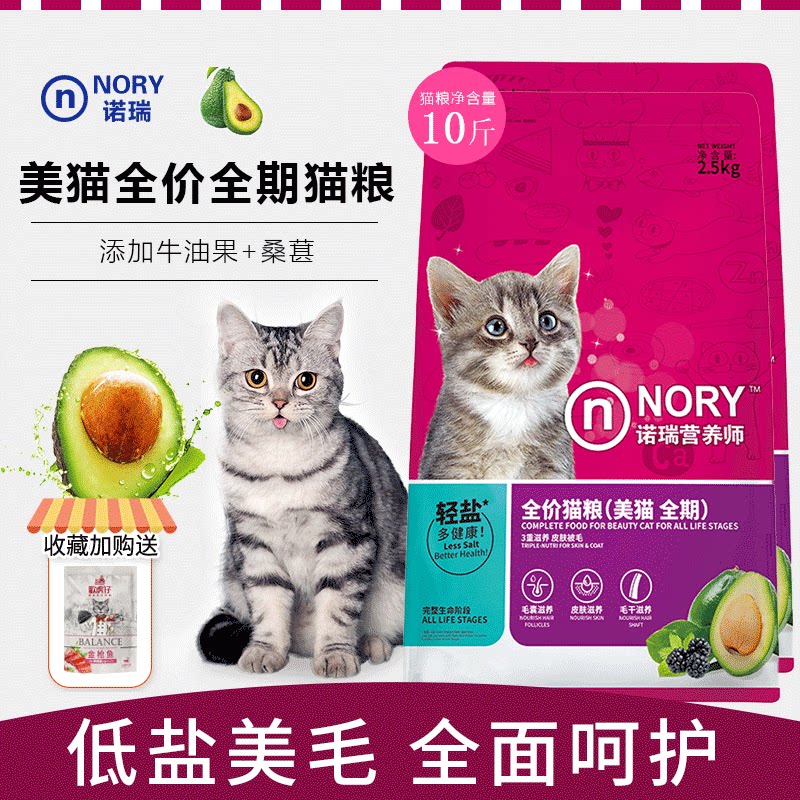 诺瑞开饭乐牛油果美毛猫粮全期5斤2包成猫幼猫通用低盐猫主粮10斤