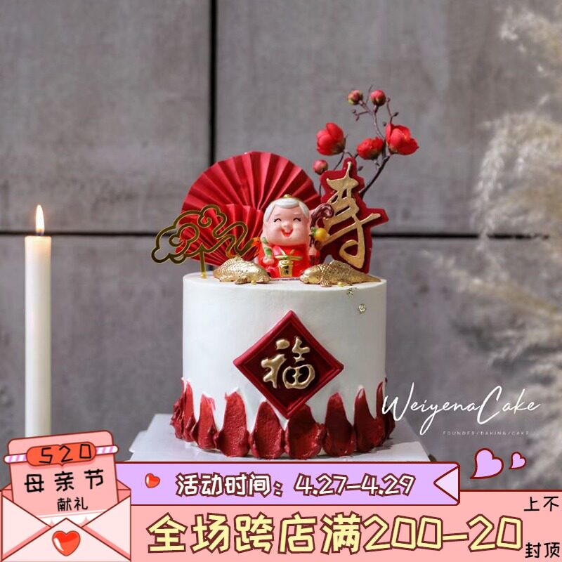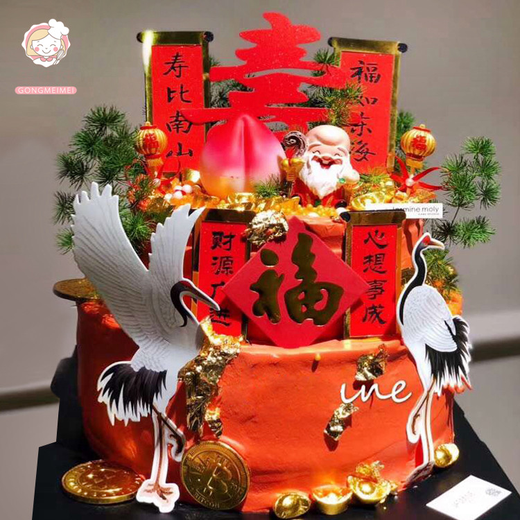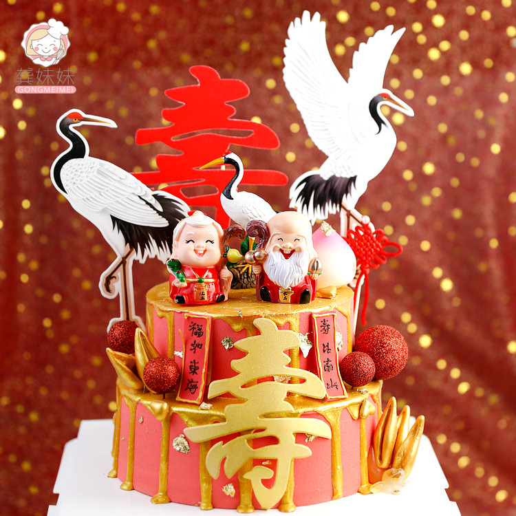 烘焙蛋糕装饰松鹤延年生日祝寿摆件寿星寿桃寿公寿婆生日插牌插件