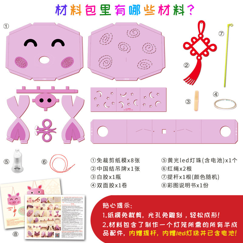 灯笼diy手工制作材料包 新年牛年元宵幼儿园儿童创意自制卡通手提