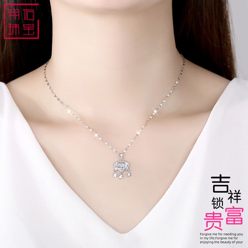 纯银平安锁项链女短款长命锁吊坠简约气质锁骨链小众网红送女友