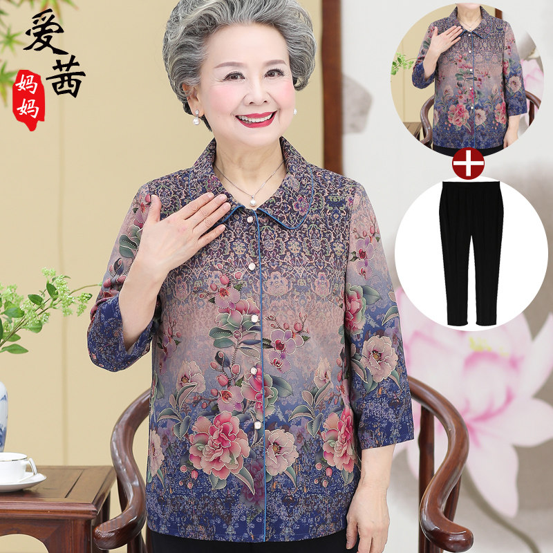 老太太春装女老人衣服60-70岁中老年人奶奶装夏装套装母亲节衣服