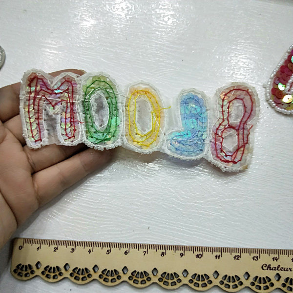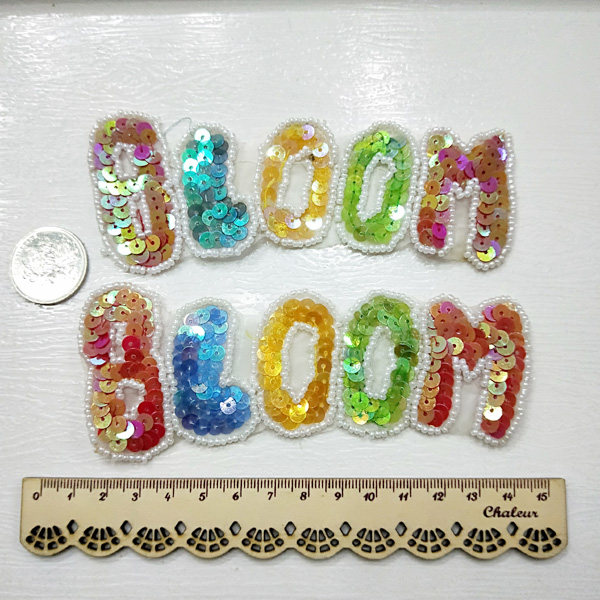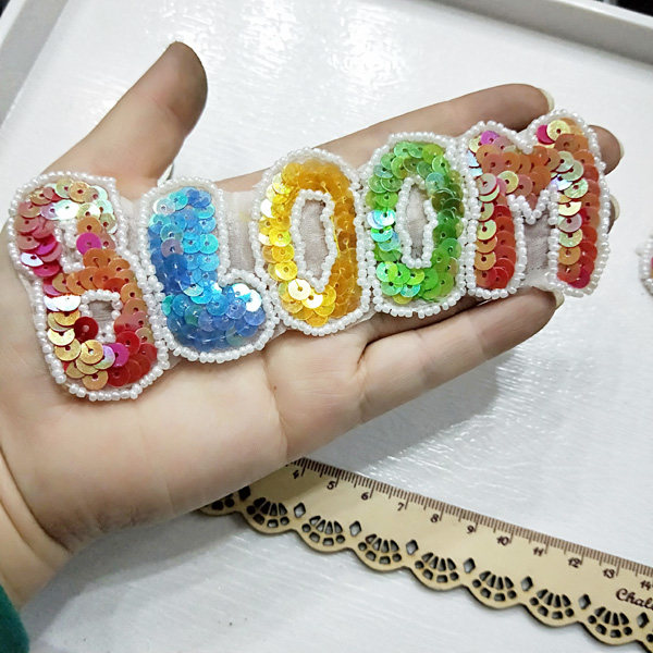 重工钉珠彩色亮片英文字母bloom布贴补丁贴 无背胶 1份2片