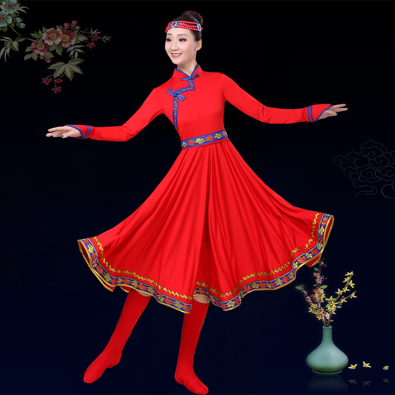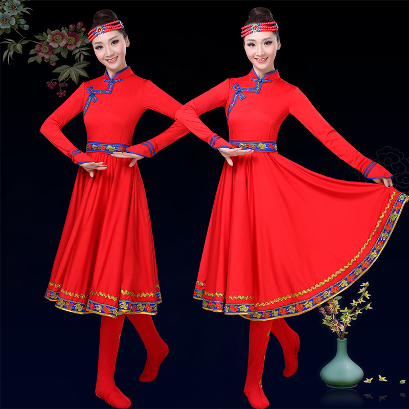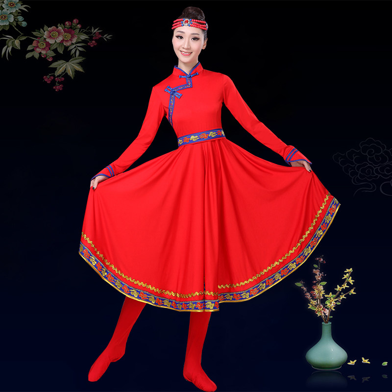 新款蒙古舞演出服大摆裙女装民族舞蹈服蒙族服装成人广场舞半身裙