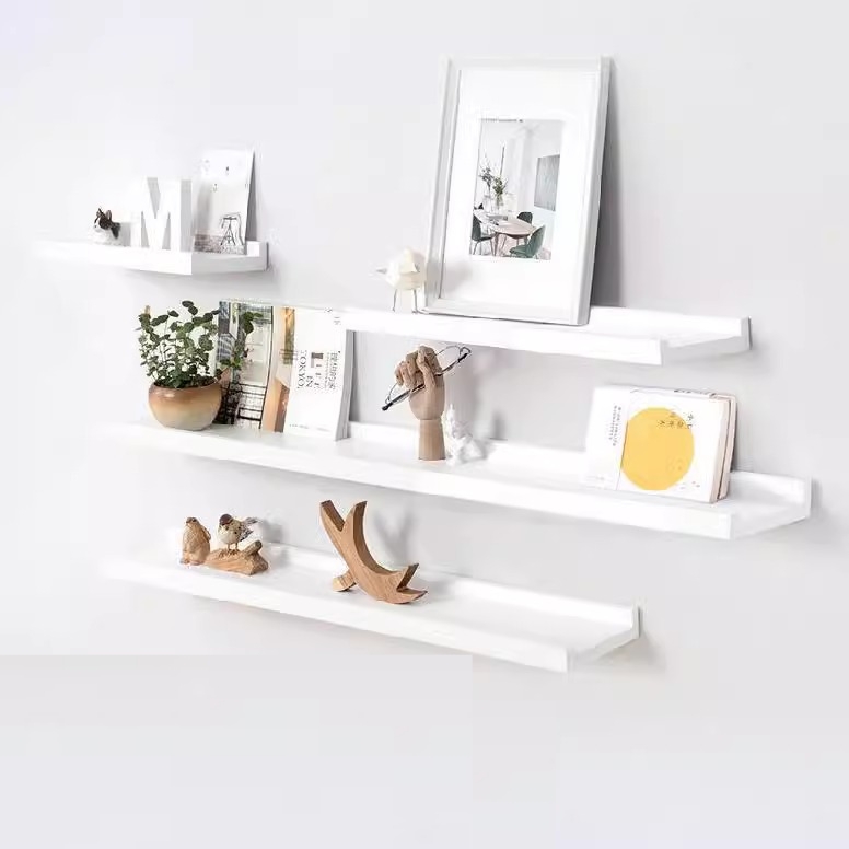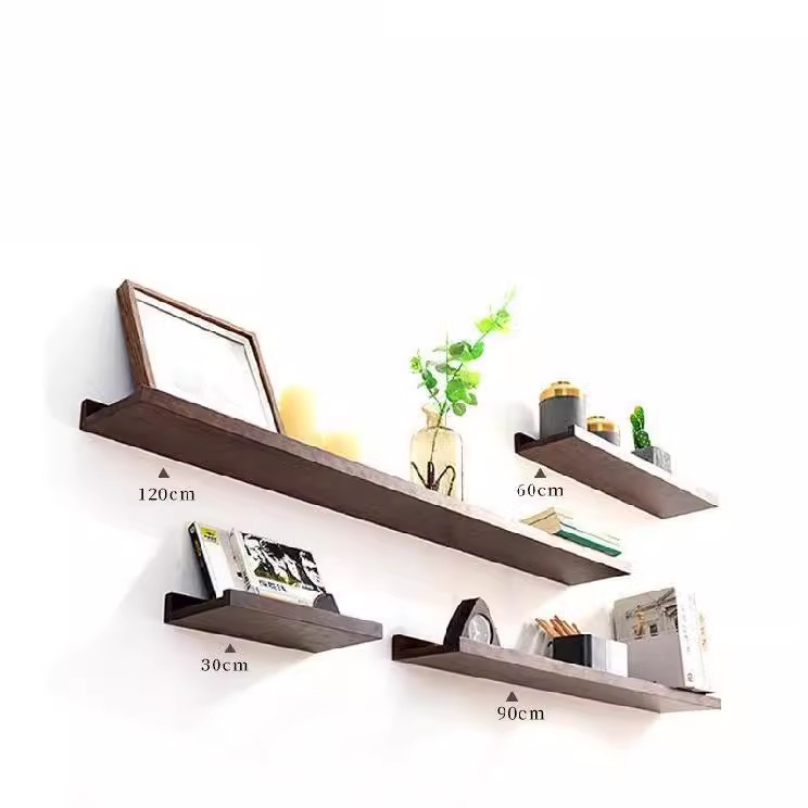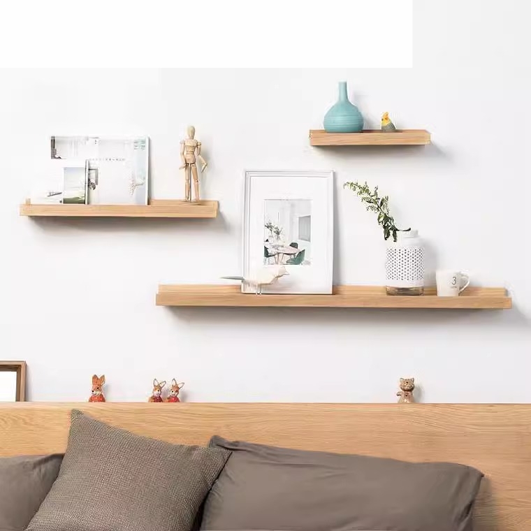 上墙一字隔搁板窄置物架客厅餐厅装饰品摆件架原木风壁挂展示书架